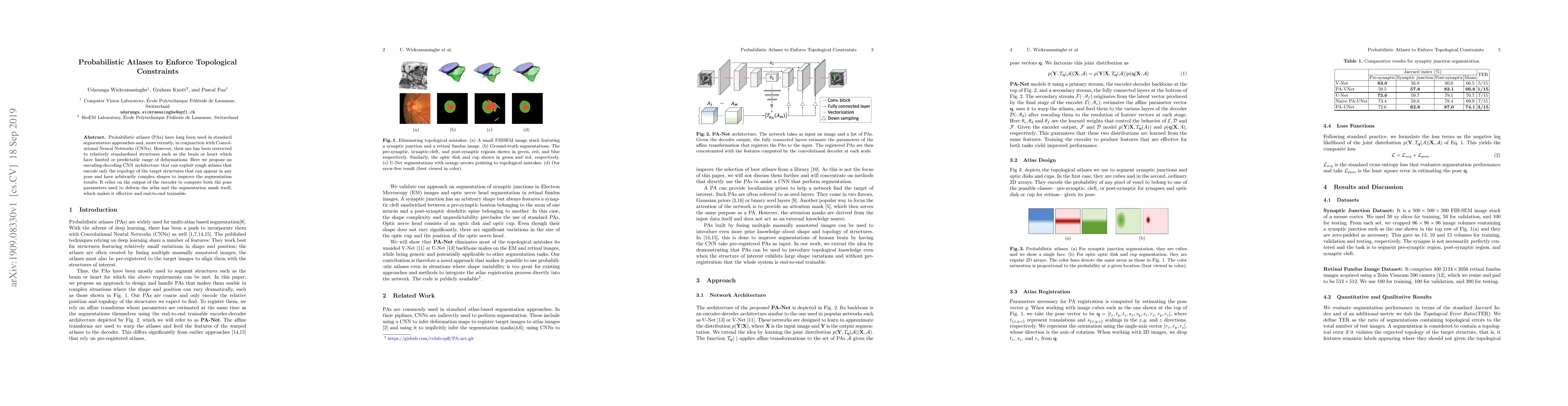 Probabilistic atlases (PAs) have long been used in standard segmentation approaches and, more recently, in conjunction with Convolutional Neural Networks (CNNs). However, their use has been restricted to relatively standardized structures such as the brain or heart which have limited or predictable range of deformations. Here we propose an encoding-decoding CNN architecture that can exploit rough atlases that encode only the topology of the target structures that can appear in any pose and have arbitrarily complex shapes to improve the segmentation results. It relies on the output of the encoder to compute both the pose parameters used to deform the atlas and the segmentation mask itself, which makes it effective and end-to-end trainable.