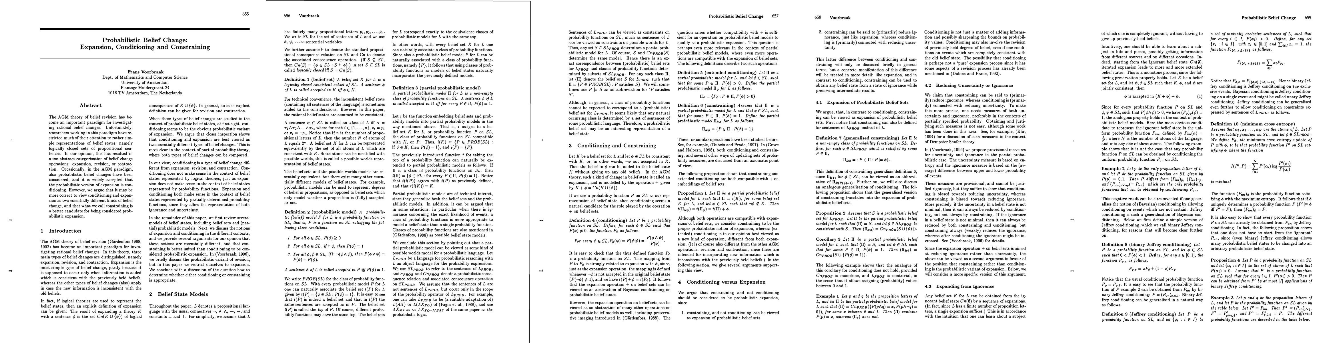 This paper critiques the AGM theory of belief revision, arguing that it overly simplifies belief change operations like expansion and revision. It proposes a distinction between conditioning and expansion, suggesting that conditioning is not the same as probabilistic expansion, and introduces "constraining" as a more appropriate term for probabilistic expansion.