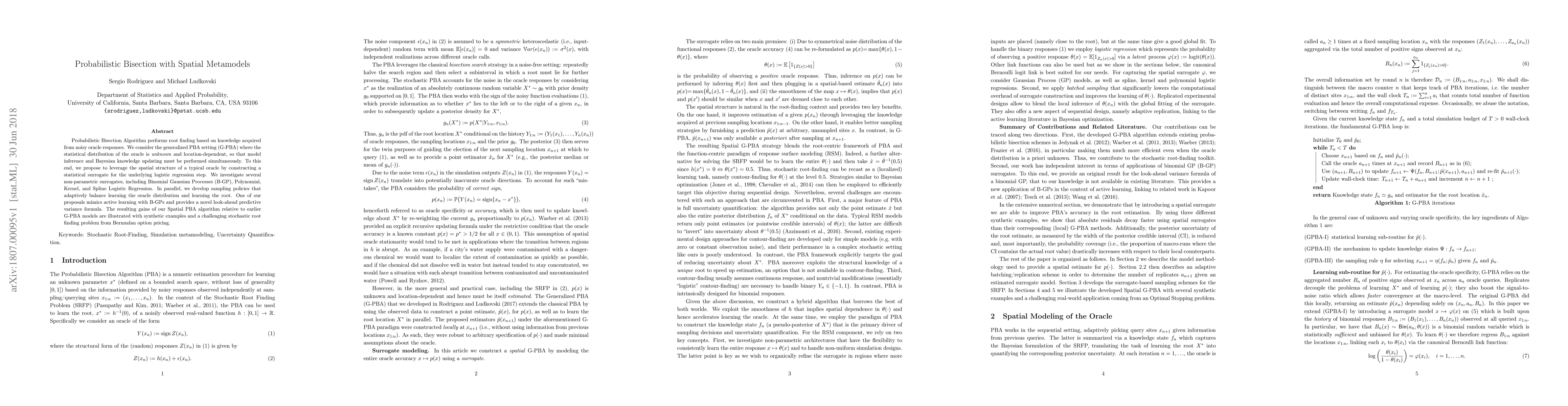 This paper proposes a Spatial Probabilistic Bisection Algorithm (Spatial PBA) to find roots using noisy oracle responses, where the oracle's statistical distribution is unknown and location-dependent. It constructs statistical surrogates, including Binomial Gaussian Processes, to model the oracle's behavior and develops adaptive sampling policies to balance learning the oracle's distribution and the root, demonstrating improved performance over previous models.