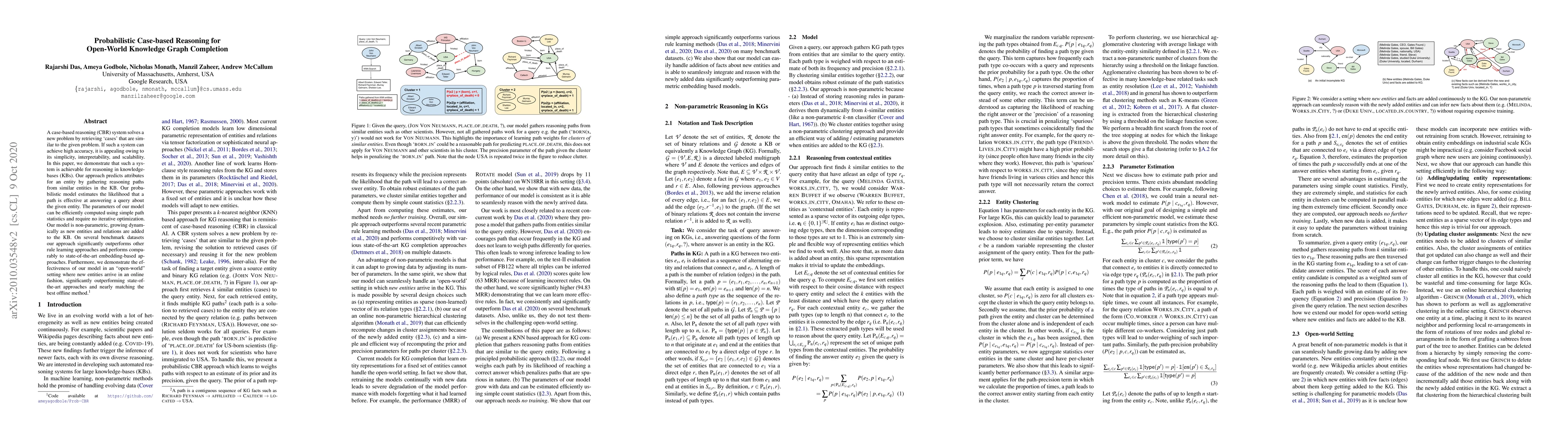 A case-based reasoning (CBR) system solves a new problem by retrieving `cases' that are similar to the given problem. If such a system can achieve high accuracy, it is appealing owing to its simplicity, interpretability, and scalability. In this paper, we demonstrate that such a system is achievable for reasoning in knowledge-bases (KBs). Our approach predicts attributes for an entity by gathering reasoning paths from similar entities in the KB. Our probabilistic model estimates the likelihood that a path is effective at answering a query about the given entity. The parameters of our model can be efficiently computed using simple path statistics and require no iterative optimization. Our model is non-parametric, growing dynamically as new entities and relations are added to the KB. On several benchmark datasets our approach significantly outperforms other rule learning approaches and performs comparably to state-of-the-art embedding-based approaches. Furthermore, we demonstrate the effectiveness of our model in an "open-world" setting where new entities arrive in an online fashion, significantly outperforming state-of-the-art approaches and nearly matching the best offline method. Code available at https://github.com/ameyagodbole/Prob-CBR