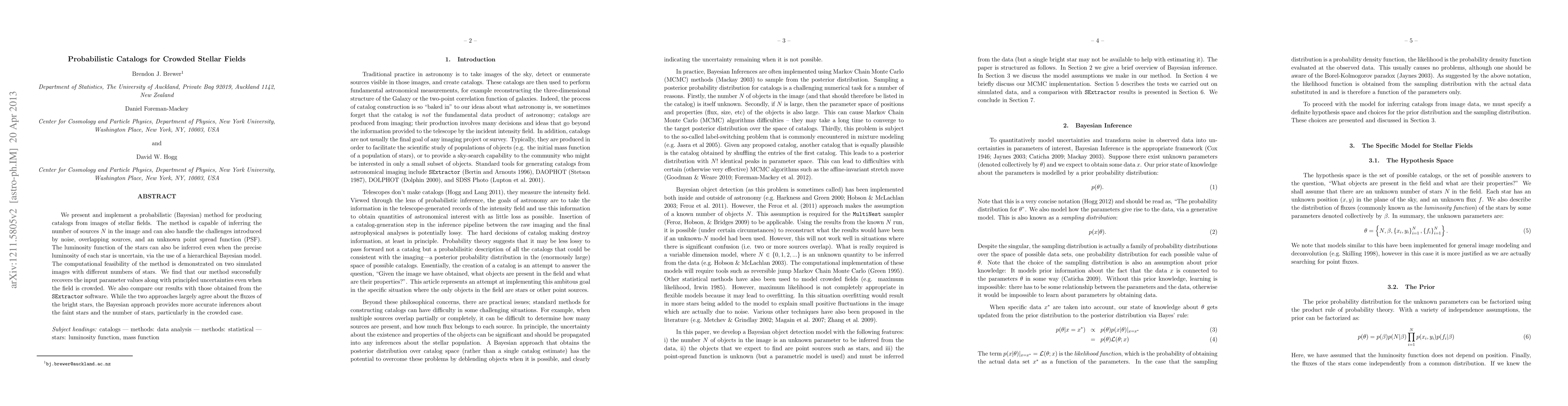 This paper introduces a Bayesian method for generating catalogs from crowded stellar fields, successfully inferring the number of stars, their luminosity function, and handling noise and overlapping sources. The method outperforms traditional software like SExtractor, especially in crowded fields, by providing more accurate inferences about faint stars and total star counts.