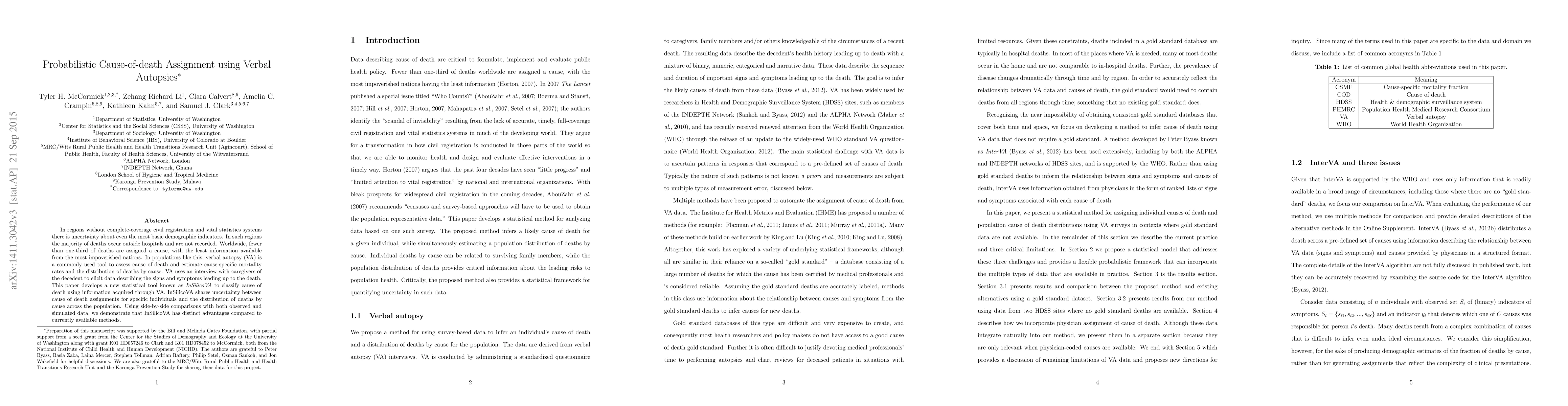 This paper introduces InSilicoVA, a new statistical tool for probabilistic cause-of-death assignment using verbal autopsies, which shares uncertainty between individual and population-level cause-of-death distributions, demonstrating advantages over existing methods through comparisons with observed and simulated data.