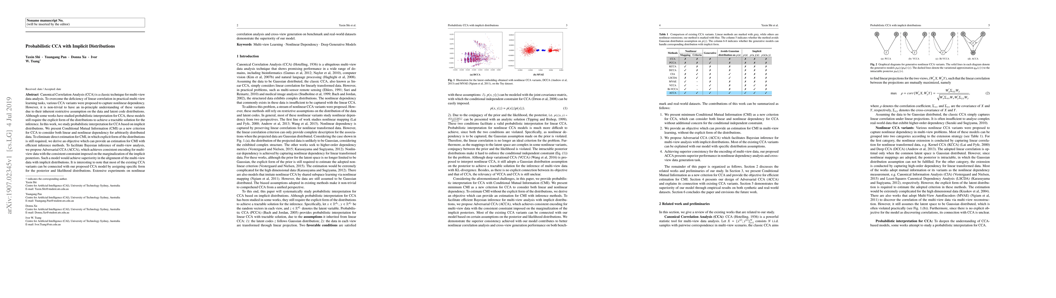 This paper proposes a probabilistic interpretation of Canonical Correlation Analysis (CCA) using implicit distributions, introducing Conditional Mutual Information (CMI) as a criterion to capture both linear and nonlinear dependencies. It presents Adversarial CCA (ACCA) for efficient inference and consistent encoding of multi-view data, demonstrating superior performance in alignment and cross-view generation tasks.