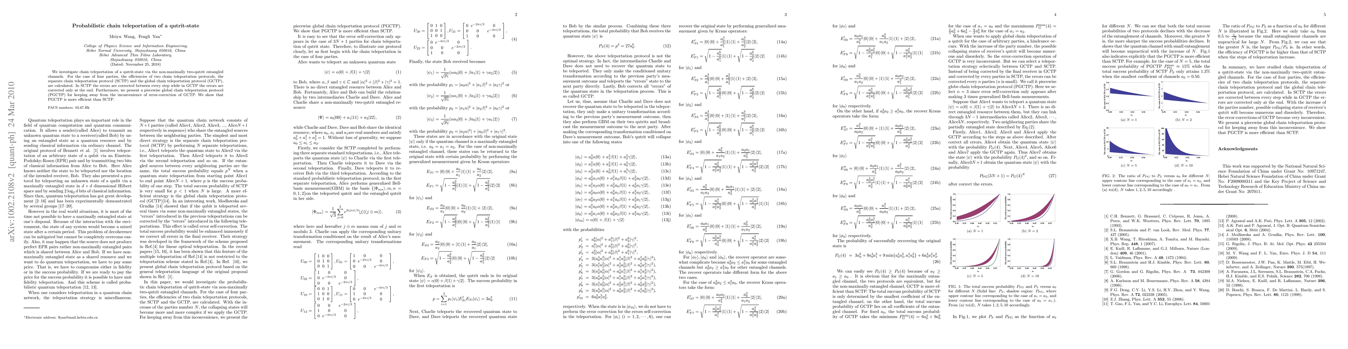 This paper explores chain teleportation of a qutrit-state using non-maximally entangled channels, comparing the efficiencies of separate and global chain teleportation protocols. The piecewise global chain teleportation protocol (PGCTP) is introduced as a more efficient alternative to the separate chain teleportation protocol (SCTP).