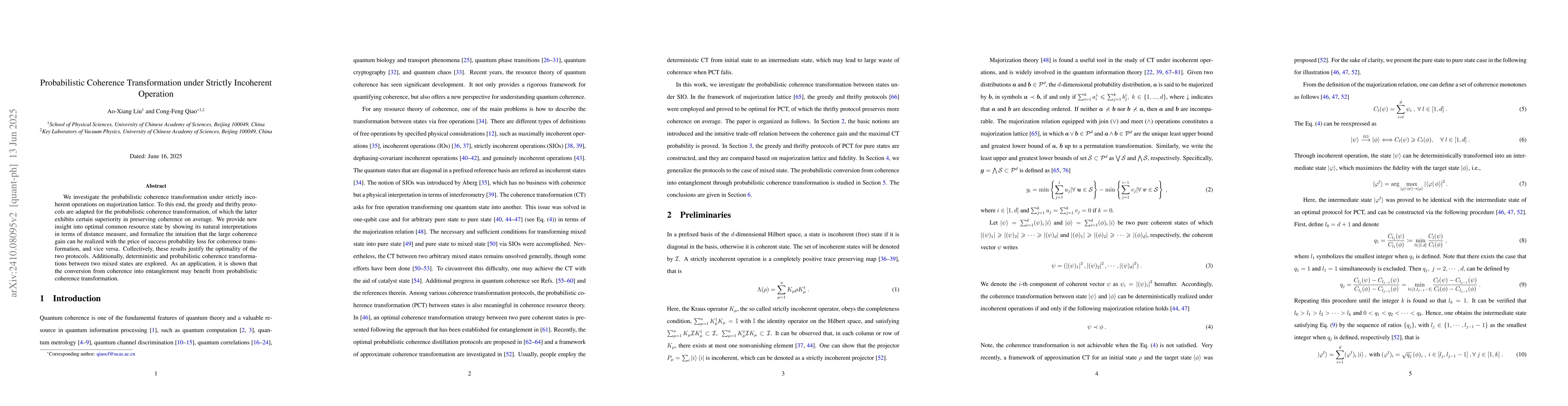 The paper presents the adaptation of greedy and thrifty protocols to probabilistic coherence transformation under strictly incoherent operations, along with theoretical proofs of Schur-convexity and Schur-concavity.