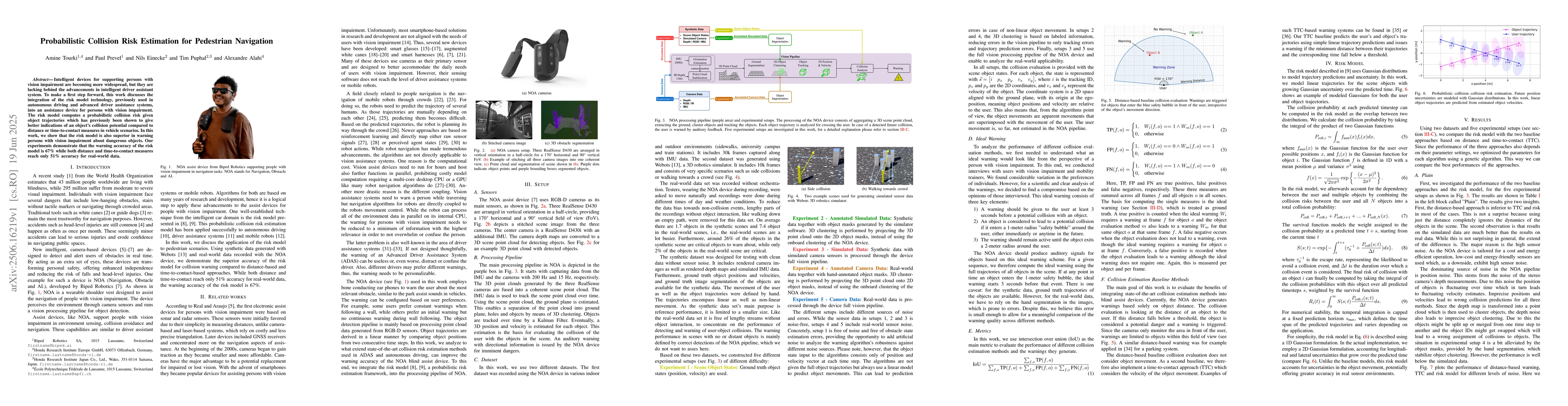 Intelligent devices for supporting persons with vision impairment are becoming more widespread, but they are lacking behind the advancements in intelligent driver assistant system. To make a first step forward, this work discusses the integration of the risk model technology, previously used in autonomous driving and advanced driver assistance systems, into an assistance device for persons with vision impairment. The risk model computes a probabilistic collision risk given object trajectories which has previously been shown to give better indications of an object's collision potential compared to distance or time-to-contact measures in vehicle scenarios. In this work, we show that the risk model is also superior in warning persons with vision impairment about dangerous objects. Our experiments demonstrate that the warning accuracy of the risk model is 67% while both distance and time-to-contact measures reach only 51% accuracy for real-world data.