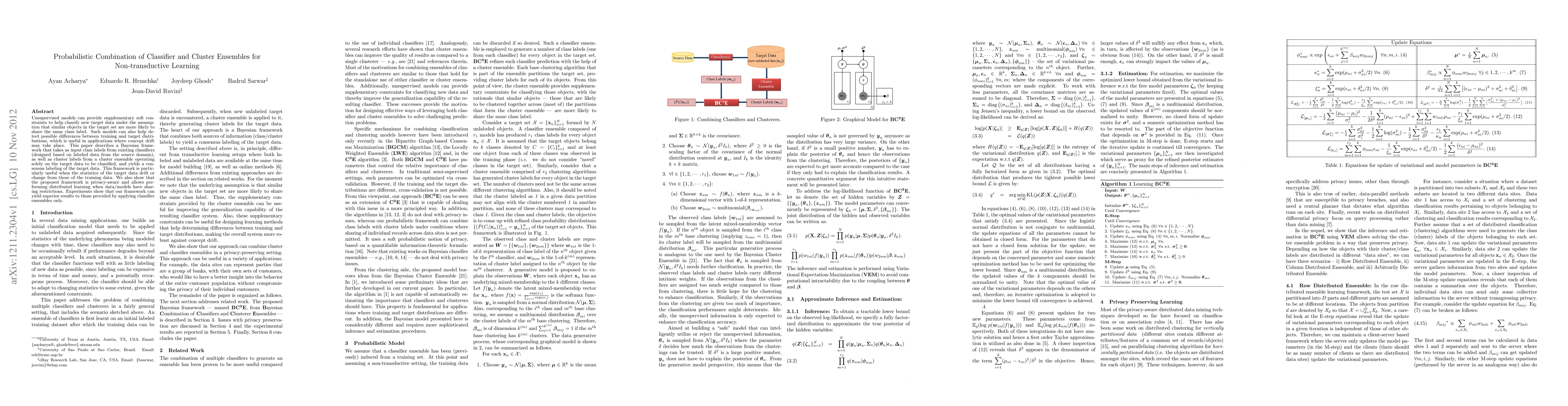 This paper proposes a Bayesian framework for non-transductive learning that combines classifier and cluster ensemble methods to classify target data, leveraging both labeled source data and unlabeled target data. The framework is effective for detecting concept drift and is privacy-aware, enabling distributed learning under data-sharing restrictions.
