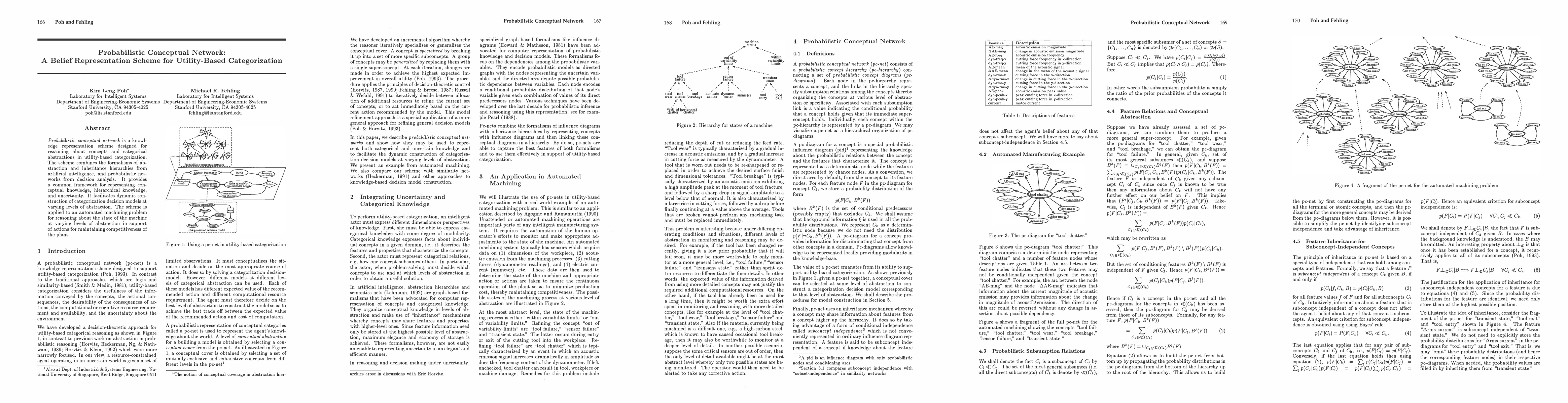 Probabilistic conceptual network is a knowledge representation scheme designed for reasoning about concepts and categorical abstractions in utility-based categorization. The scheme combines the formalisms of abstraction and inheritance hierarchies from artificial intelligence, and probabilistic networks from decision analysis. It provides a common framework for representing conceptual knowledge, hierarchical knowledge, and uncertainty. It facilitates dynamic construction of categorization decision models at varying levels of abstraction. The scheme is applied to an automated machining problem for reasoning about the state of the machine at varying levels of abstraction in support of actions for maintaining competitiveness of the plant.