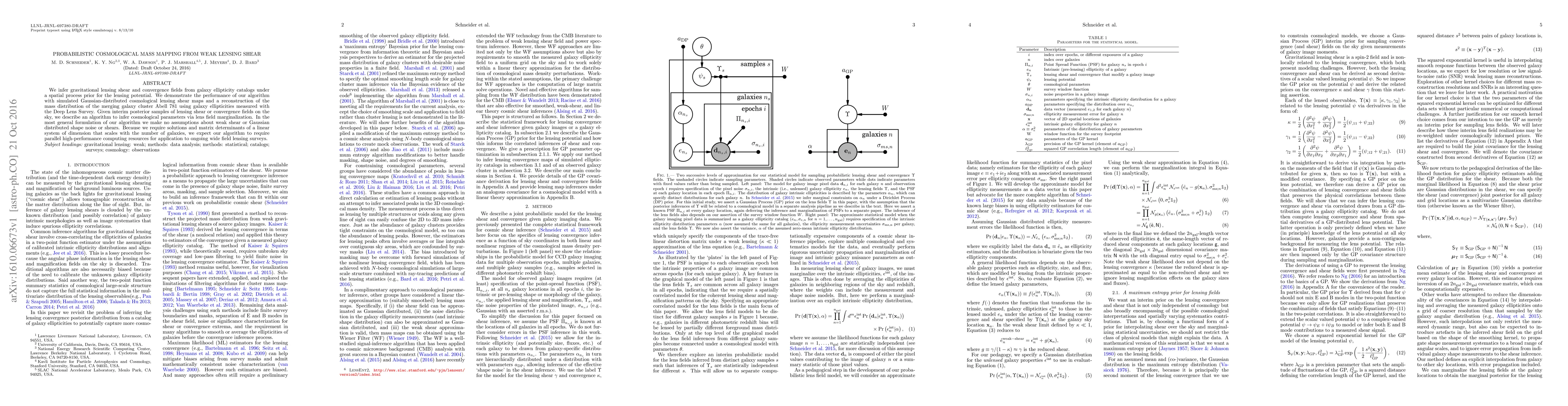 This paper presents an algorithm for probabilistic mass mapping in cosmology using weak gravitational lensing shear, validated with simulated data and applied to the Abell 781 cluster. The method leverages galaxy ellipticities and requires high-performance computing for scalability.