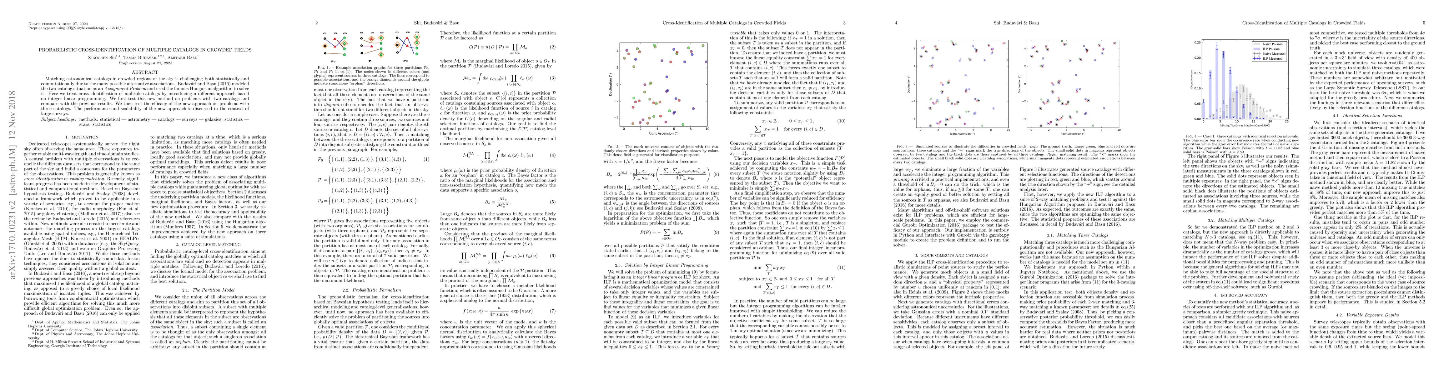 This paper proposes a novel integer linear programming method for probabilistically matching multiple astronomical catalogs in crowded sky regions, contrasting it with the Hungarian algorithm. The new approach is tested and compared against previous methods for two-catalog and three-catalog scenarios, with a discussion on its performance and scalability for large survey applications.