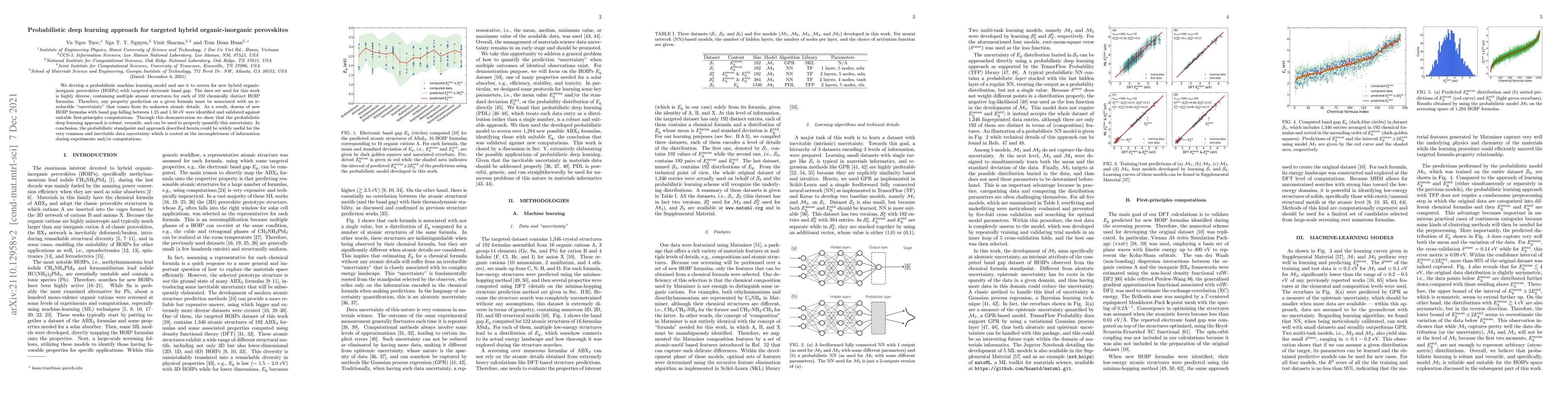 Researchers developed a probabilistic machine learning model to predict electronic band gaps in hybrid organic-inorganic perovskites with uncertainty quantification. The approach identified 36 new compounds with targeted band gaps between 1.25-1.50 eV.