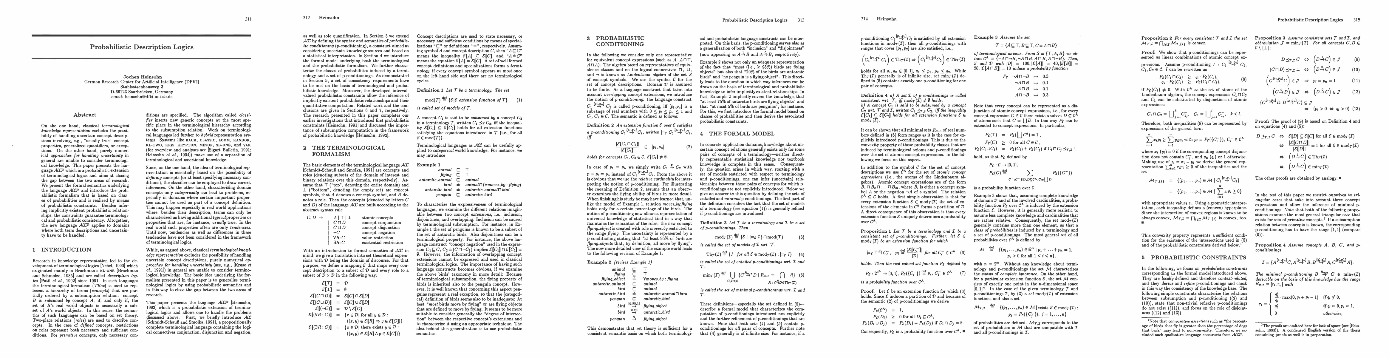 This paper introduces ACP, a probabilistic extension of terminological logics to handle uncertain concept descriptions, bridging the gap between classical knowledge representation and numerical uncertainty approaches. The language ALUP ensures terminological and probabilistic consistency through probabilistic constraints.
