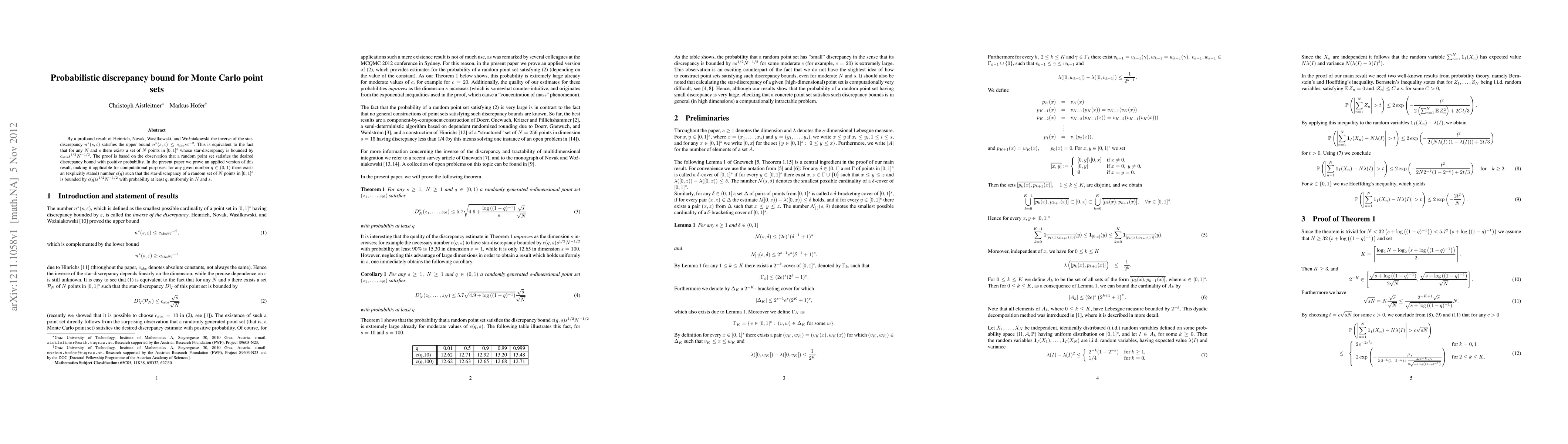 By a profound result of Heinrich, Novak, Wasilkowski, and Wo{\'z}niakowski the inverse of the star-discrepancy $n^*(s,\ve)$ satisfies the upper bound $n^*(s,\ve) \leq c_{\mathrm{abs}} s \ve^{-2}$. This is equivalent to the fact that for any $N$ and $s$ there exists a set of $N$ points in $[0,1]^s$ whose star-discrepancy is bounded by $c_{\mathrm{abs}} s^{1/2} N^{-1/2}$. The proof is based on the observation that a random point set satisfies the desired discrepancy bound with positive probability. In the present paper we prove an applied version of this result, making it applicable for computational purposes: for any given number $q \in (0,1)$ there exists an (explicitly stated) number $c(q)$ such that the star-discrepancy of a random set of $N$ points in $[0,1]^s$ is bounded by $c(q) s^{1/2} N^{-1/2}$ with probability at least $q$, uniformly in $N$ and $s$.