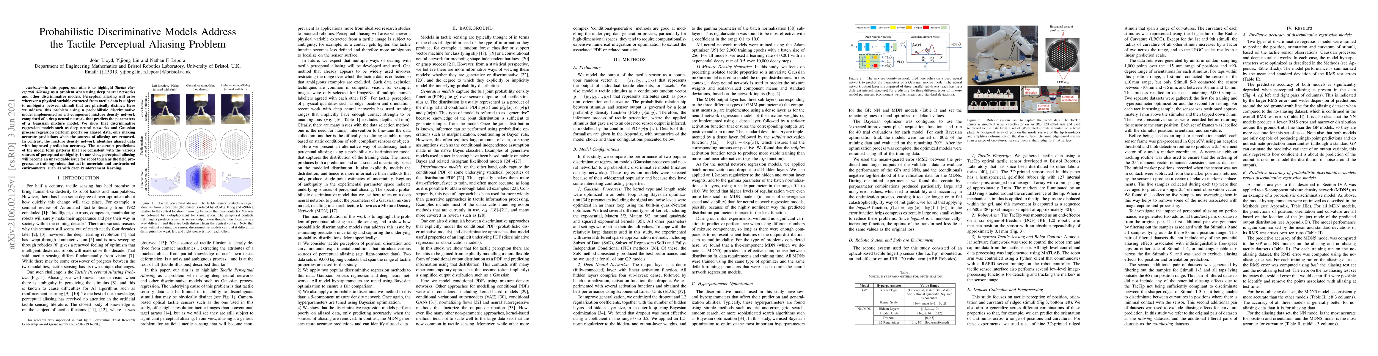 In this paper, our aim is to highlight Tactile Perceptual Aliasing as a problem when using deep neural networks and other discriminative models. Perceptual aliasing will arise wherever a physical variable extracted from tactile data is subject to ambiguity between stimuli that are physically distinct. Here we address this problem using a probabilistic discriminative model implemented as a 5-component mixture density network comprised of a deep neural network that predicts the parameters of a Gaussian mixture model. We show that discriminative regression models such as deep neural networks and Gaussian process regression perform poorly on aliased data, only making accurate predictions when the sources of aliasing are removed. In contrast, the mixture density network identifies aliased data with improved prediction accuracy. The uncertain predictions of the model form patterns that are consistent with the various sources of perceptual ambiguity. In our view, perceptual aliasing will become an unavoidable issue for robot touch as the field progresses to training robots that act in uncertain and unstructured environments, such as with deep reinforcement learning.