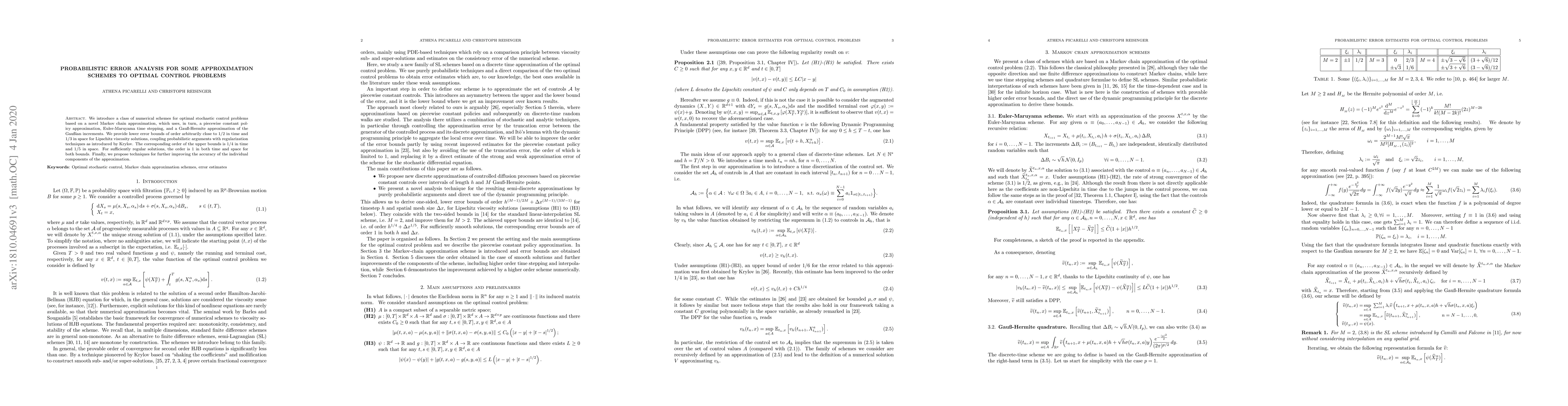 We introduce a class of numerical schemes for optimal control problems based on a novel Markov chain approximation, which uses, in turn, a piecewise constant policy approximation, Euler-Maruyama time stepping, and a Gauss-Hermite approximation of the Gaussian increments. We provide lower error bounds of order arbitrarily close to 1/2 in time and 1/3 in space for Lipschitz viscosity solutions, coupling probabilistic arguments with regularization techniques as introduced by Krylov. The corresponding order of the upper bounds is 1/4 in time and 1/5 in space. For sufficiently regular solutions, the order is 1 in both time and space for both bounds. Finally, we propose techniques for further improving the accuracy of the individual components of the approximation.