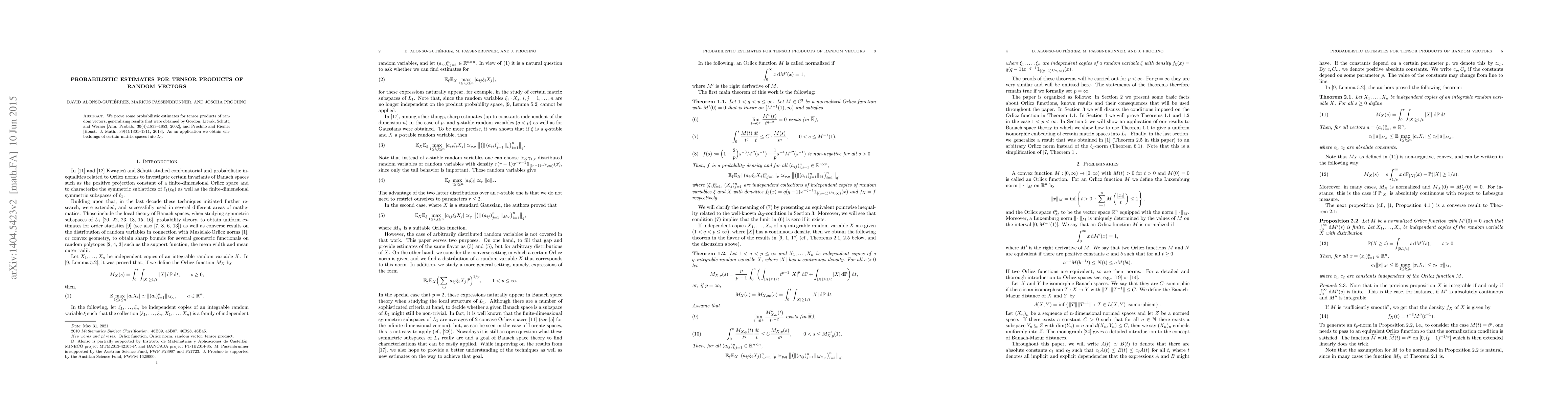 We prove some probabilistic estimates for tensor products of random vectors. As an application we obtain embeddings of certain matrix spaces into $L_1$.