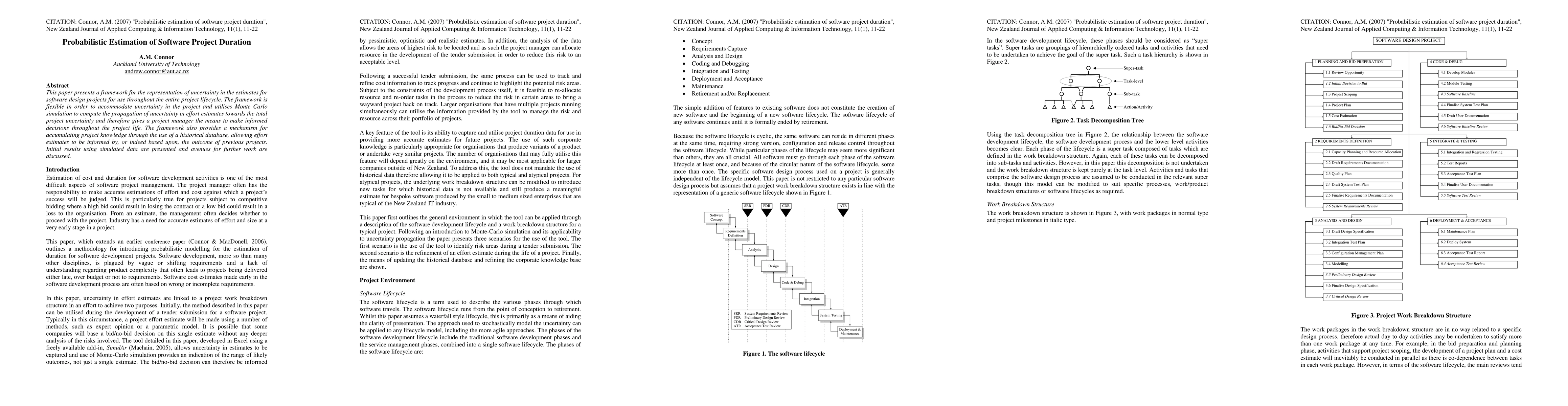 This paper presents a framework for the representation of uncertainty in the estimates for software design projects for use throughout the entire project lifecycle. The framework is flexible in order to accommodate uncertainty in the project and utilises Monte Carlo simulation to compute the propagation of uncertainty in effort estimates towards the total project uncertainty and therefore gives a project manager the means to make informed decisions throughout the project life. The framework also provides a mechanism for accumulating project knowledge through the use of a historical database, allowing effort estimates to be informed by, or indeed based upon, the outcome of previous projects. Initial results using simulated data are presented and avenues for further work are discussed.