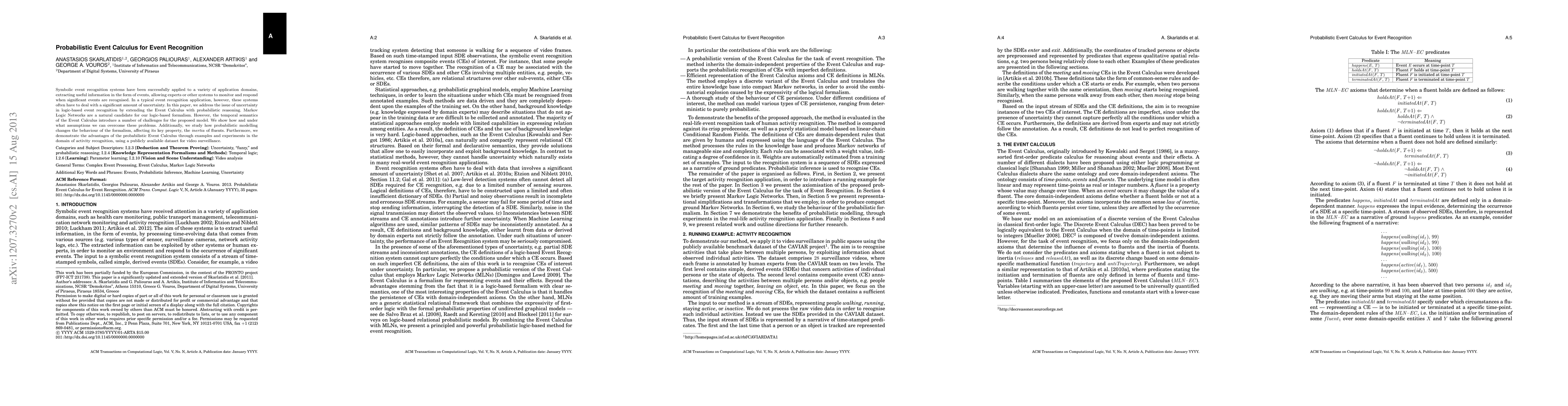 This paper extends the Event Calculus with probabilistic reasoning to address uncertainty in logic-based event recognition systems, using Markov Logic Networks. It tackles temporal semantics challenges and demonstrates improved performance in activity recognition through experiments in video surveillance.