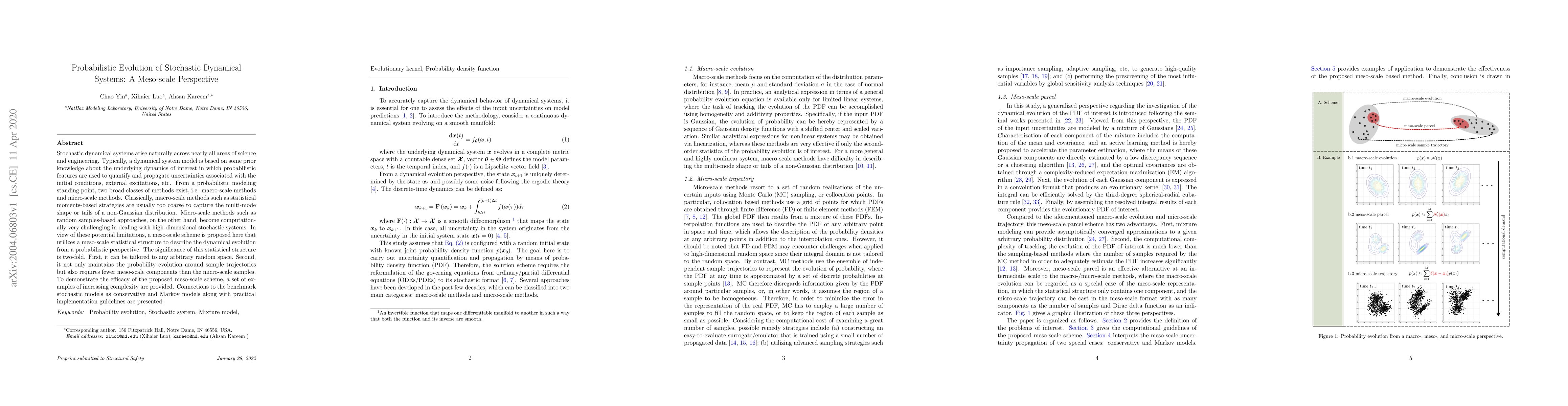 This paper proposes a meso-scale probabilistic modeling approach for stochastic dynamical systems, offering a balance between macro-scale and micro-scale methods. It demonstrates the method's efficiency in capturing non-Gaussian distribution features and reducing computational complexity compared to micro-scale approaches.
