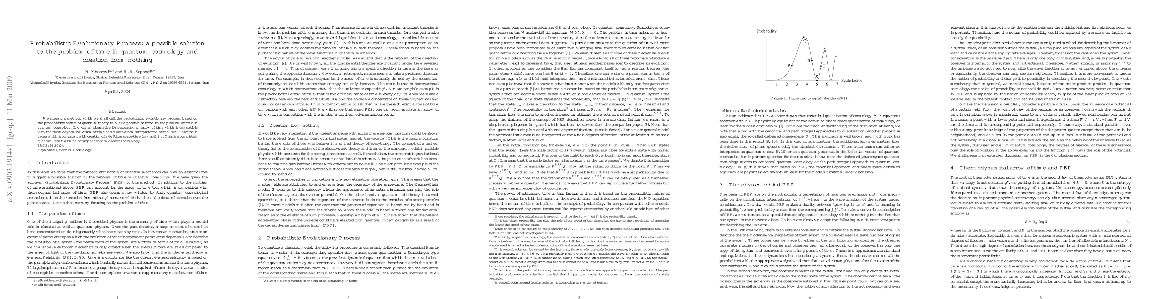 The paper proposes a probabilistic evolutionary process to address the problem of time in quantum cosmology, offering a quantum-based arrow of time compatible with thermodynamical considerations and explaining the creation of a de Sitter space-time from nothing. This approach provides a novel quantum interpretation with no classical counterpart.