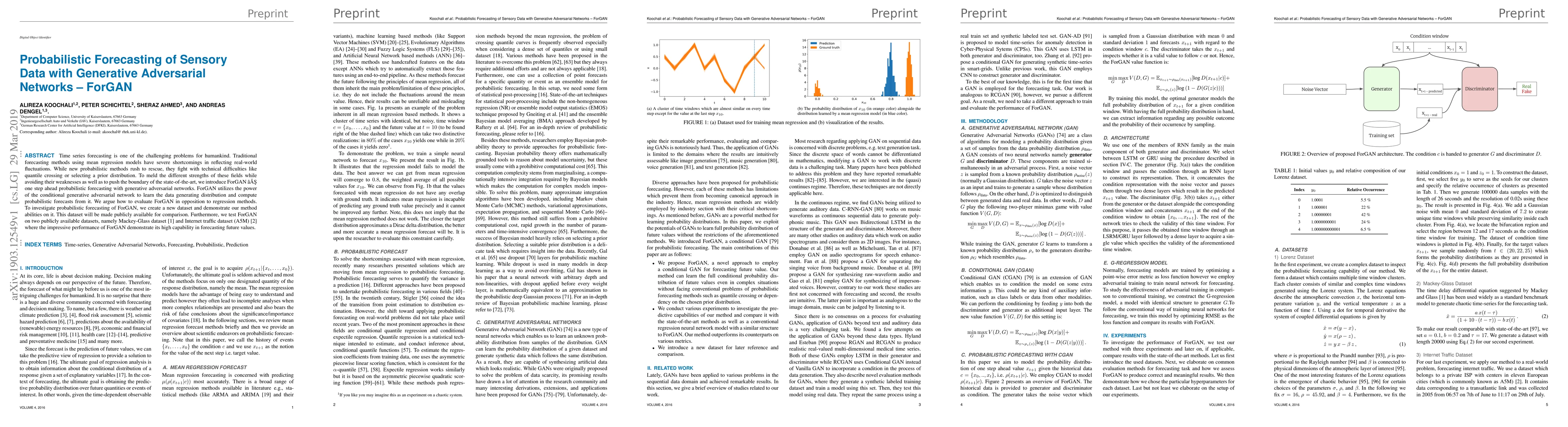 This paper introduces ForGAN, a probabilistic forecasting method using generative adversarial networks (GANs) to predict time series data, addressing the limitations of traditional regression models. ForGAN demonstrates superior performance on newly created and publicly available datasets, showcasing its potential for accurate future value predictions.