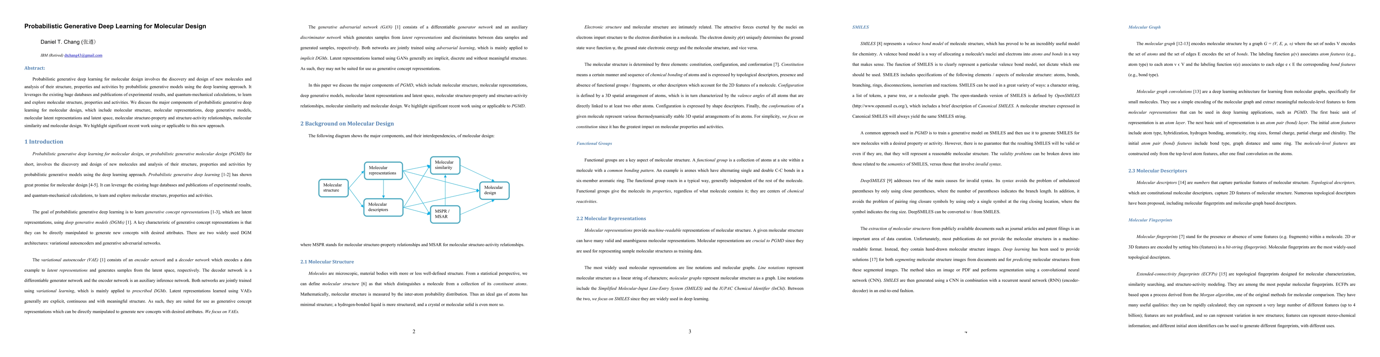 This paper explores probabilistic generative deep learning for molecular design, focusing on discovering and designing new molecules through deep learning models. It discusses key components like molecular representations, generative models, and latent space, highlighting recent advancements in this innovative approach.