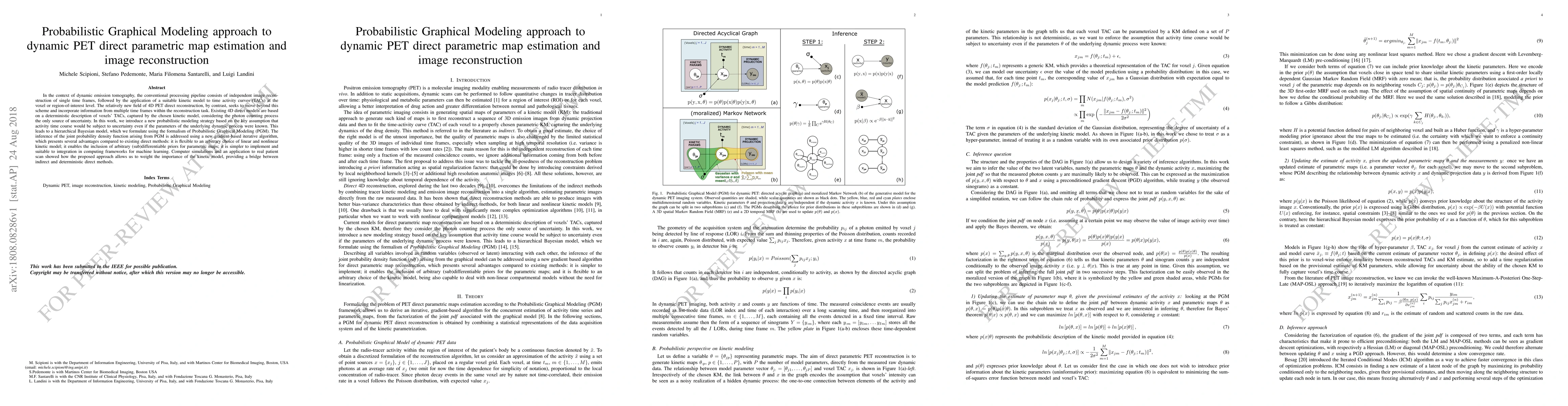 Researchers developed a probabilistic graphical modeling approach for dynamic PET imaging, allowing for flexible and accurate estimation of activity time courses with uncertainty. This method provides a bridge between indirect and deterministic direct reconstruction methods, enabling better image quality and model selection.