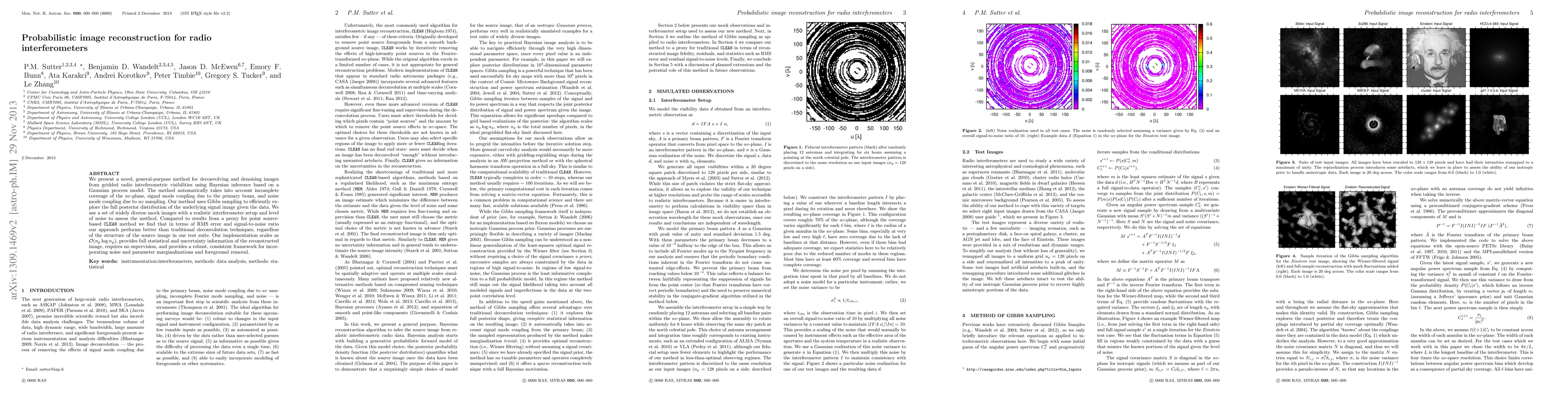 We present a novel, general-purpose method for deconvolving and denoising images from gridded radio interferometric visibilities using Bayesian inference based on a Gaussian process model. The method automatically takes into account incomplete coverage of the uv-plane, signal mode coupling due to the primary beam, and noise mode coupling due to uv sampling. Our method uses Gibbs sampling to efficiently explore the full posterior distribution of the underlying signal image given the data. We use a set of widely diverse mock images with a realistic interferometer setup and level of noise to assess the method. Compared to results from a proxy for point source- based CLEAN method we find that in terms of RMS error and signal-to-noise ratio our approach performs better than traditional deconvolution techniques, regardless of the structure of the source image in our test suite. Our implementation scales as O(np log np), provides full statistical and uncertainty information of the reconstructed image, requires no supervision, and provides a robust, consistent framework for incorporating noise and parameter marginalizations and foreground removal.