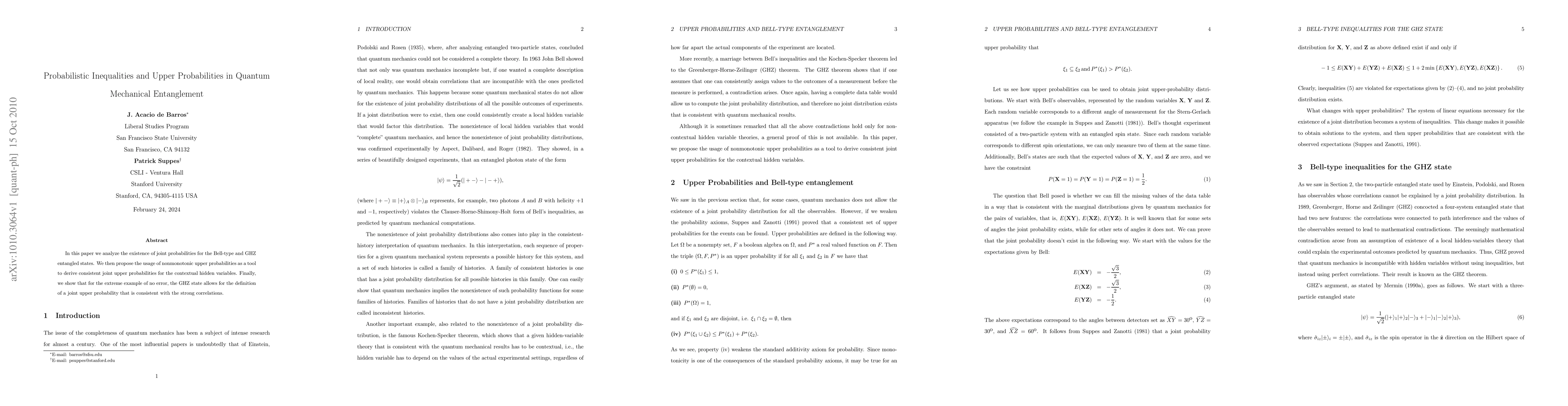 In this paper we analyze the existence of joint probabilities for the Bell-type and GHZ entangled states. We then propose the usage of nonmonotonic upper probabilities as a tool to derive consistent joint upper probabilities for the contextual hidden variables. Finally, we show that for the extreme example of no error, the GHZ state allows for the definition of a joint upper probability that is consistent with the strong correlations.