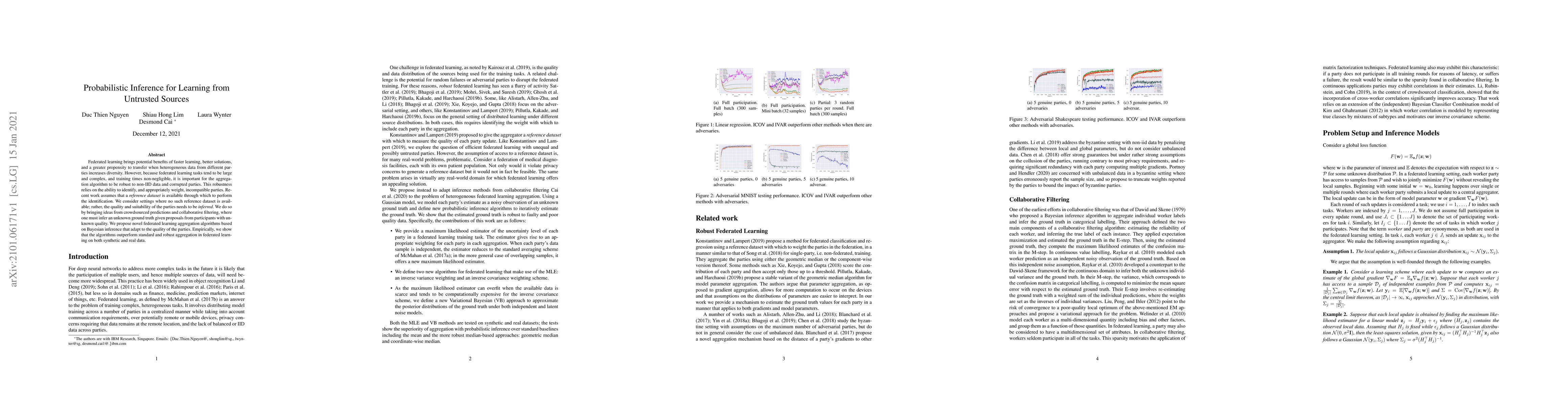 Federated learning brings potential benefits of faster learning, better solutions, and a greater propensity to transfer when heterogeneous data from different parties increases diversity. However, because federated learning tasks tend to be large and complex, and training times non-negligible, it is important for the aggregation algorithm to be robust to non-IID data and corrupted parties. This robustness relies on the ability to identify, and appropriately weight, incompatible parties. Recent work assumes that a \textit{reference dataset} is available through which to perform the identification. We consider settings where no such reference dataset is available; rather, the quality and suitability of the parties needs to be \textit{inferred}. We do so by bringing ideas from crowdsourced predictions and collaborative filtering, where one must infer an unknown ground truth given proposals from participants with unknown quality. We propose novel federated learning aggregation algorithms based on Bayesian inference that adapt to the quality of the parties. Empirically, we show that the algorithms outperform standard and robust aggregation in federated learning on both synthetic and real data.