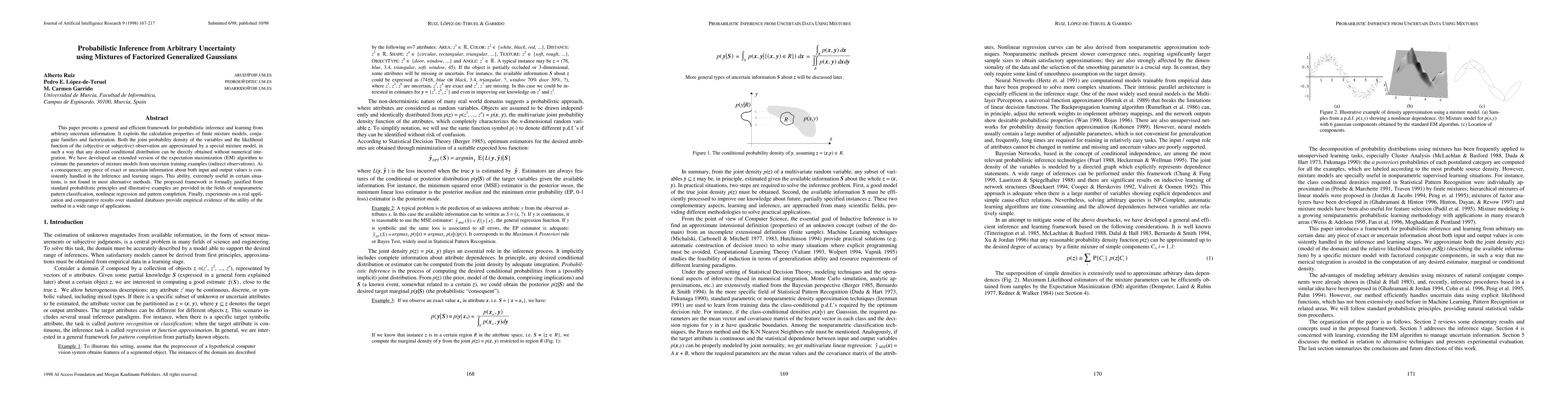 This paper presents a general and efficient framework for probabilistic inference and learning from arbitrary uncertain information. It exploits the calculation properties of finite mixture models, conjugate families and factorization. Both the joint probability density of the variables and the likelihood function of the (objective or subjective) observation are approximated by a special mixture model, in such a way that any desired conditional distribution can be directly obtained without numerical integration. We have developed an extended version of the expectation maximization (EM) algorithm to estimate the parameters of mixture models from uncertain training examples (indirect observations). As a consequence, any piece of exact or uncertain information about both input and output values is consistently handled in the inference and learning stages. This ability, extremely useful in certain situations, is not found in most alternative methods. The proposed framework is formally justified from standard probabilistic principles and illustrative examples are provided in the fields of nonparametric pattern classification, nonlinear regression and pattern completion. Finally, experiments on a real application and comparative results over standard databases provide empirical evidence of the utility of the method in a wide range of applications.