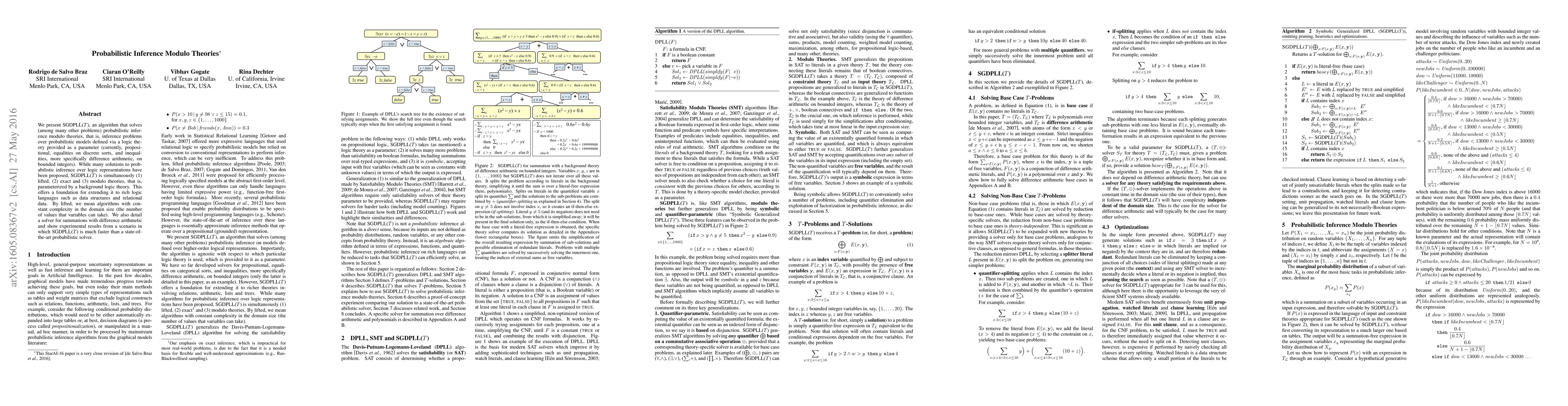 This paper introduces SGDPLL(T), an exact, lifted algorithm for probabilistic inference over logic theories, including propositional logic and arithmetic on bounded integers. It demonstrates superior performance compared to existing solvers in experimental scenarios.