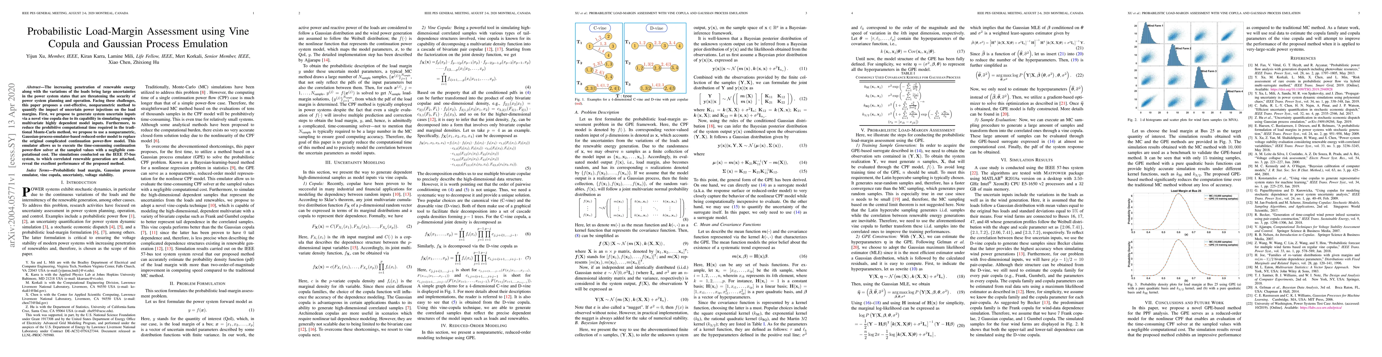 This paper proposes a probabilistic load-margin assessment method using vine copula to model complex multivariate dependencies and Gaussian-process emulation to efficiently replace the traditional Monte-Carlo method, demonstrating effective performance on the IEEE 57-bus system.