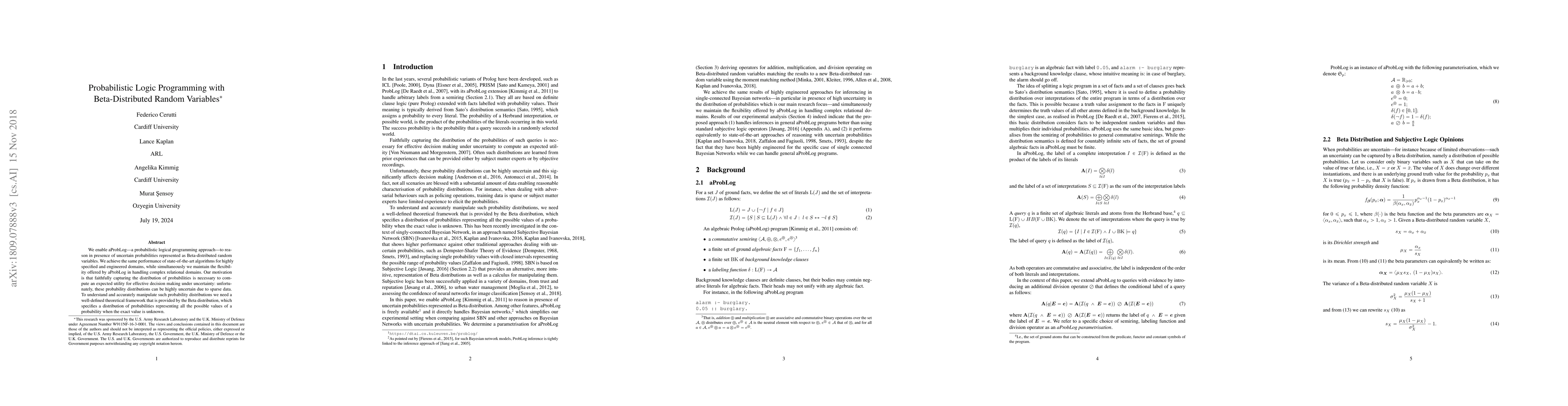 Researchers developed a new approach for probabilistic logical programming that uses Beta-distributed random variables to reason under uncertainty, achieving comparable performance with existing algorithms while maintaining flexibility.