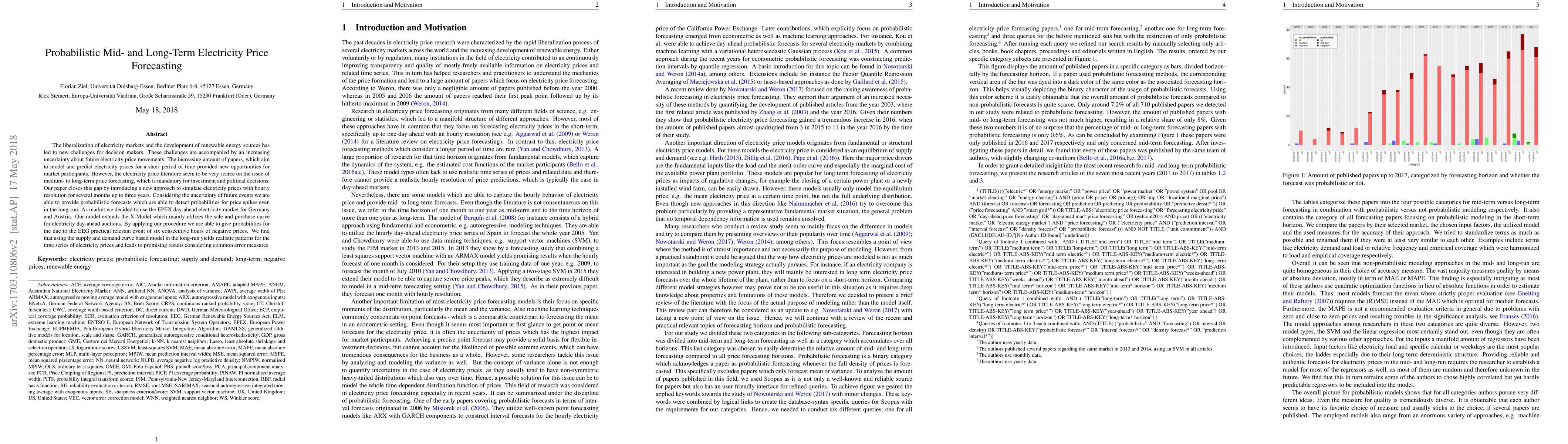 The liberalization of electricity markets and the development of renewable energy sources has led to new challenges for decision makers. These challenges are accompanied by an increasing uncertainty about future electricity price movements. The increasing amount of papers, which aim to model and predict electricity prices for a short period of time provided new opportunities for market participants. However, the electricity price literature seem to be very scarce on the issue of medium- to long-term price forecasting, which is mandatory for investment and political decisions. Our paper closes this gap by introducing a new approach to simulate electricity prices with hourly resolution for several months up to three years. Considering the uncertainty of future events we are able to provide probabilistic forecasts which are able to detect probabilities for price spikes even in the long-run. As market we decided to use the EPEX day-ahead electricity market for Germany and Austria. Our model extends the X-Model which mainly utilizes the sale and purchase curve for electricity day-ahead auctions. By applying our procedure we are able to give probabilities for the due to the EEG practical relevant event of six consecutive hours of negative prices. We find that using the supply and demand curve based model in the long-run yields realistic patterns for the time series of electricity prices and leads to promising results considering common error measures.
