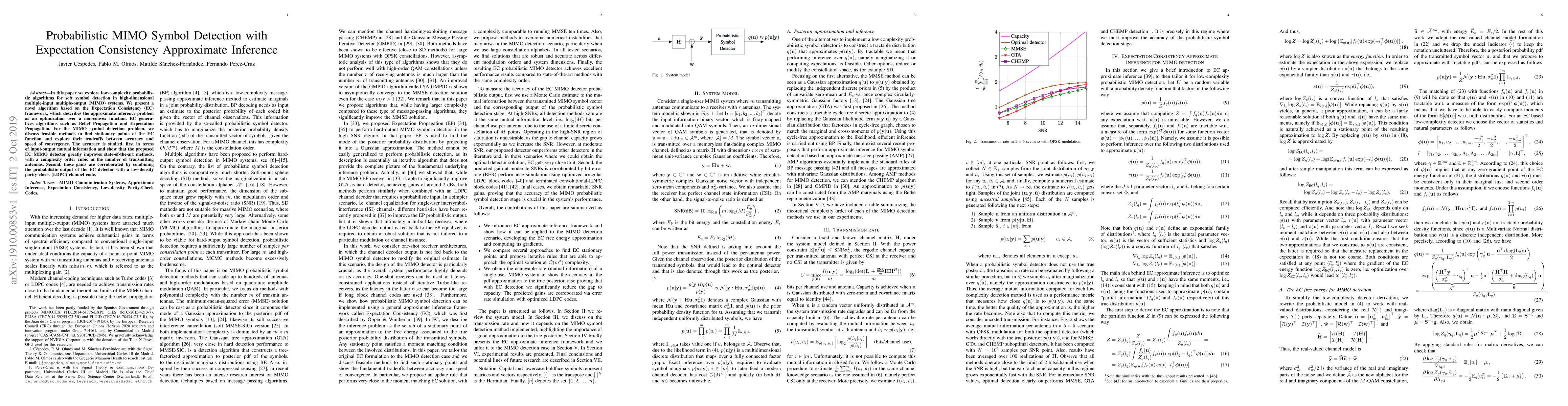This paper introduces a low-complexity probabilistic algorithm based on the Expectation Consistency (EC) framework for MIMO symbol detection, achieving improved accuracy over state-of-the-art methods with cubic complexity relative to the number of antennas. The EC framework optimizes a non-convex function and combines well with LDPC codes to further enhance performance.