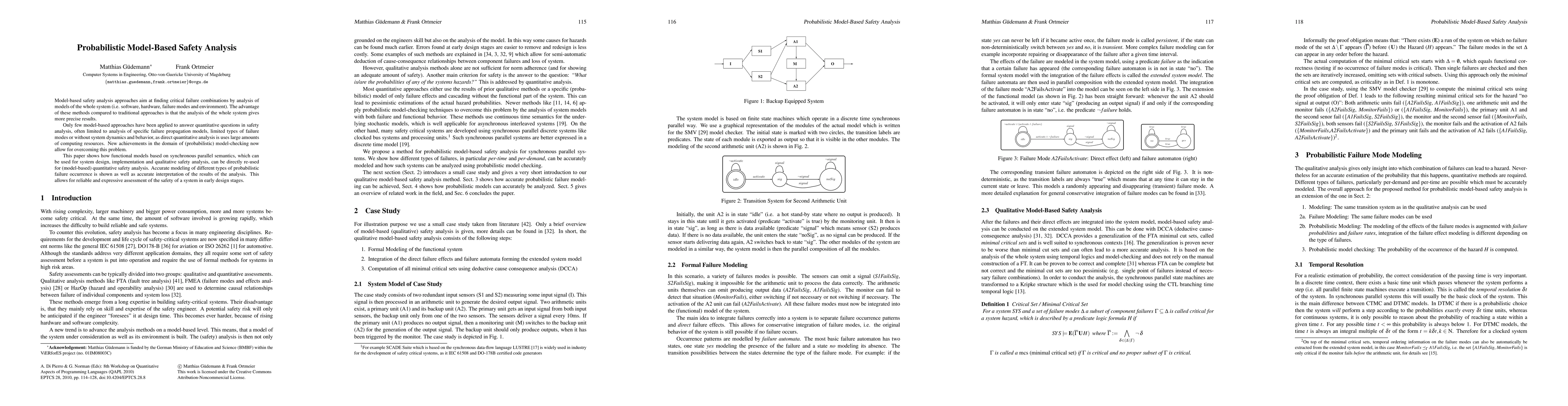 This paper presents a probabilistic model-based approach for safety analysis that leverages functional models for precise quantitative assessment, overcoming traditional resource limitations through advancements in probabilistic model-checking. It enables early-stage safety evaluation by accurately modeling and interpreting various types of probabilistic failure modes.