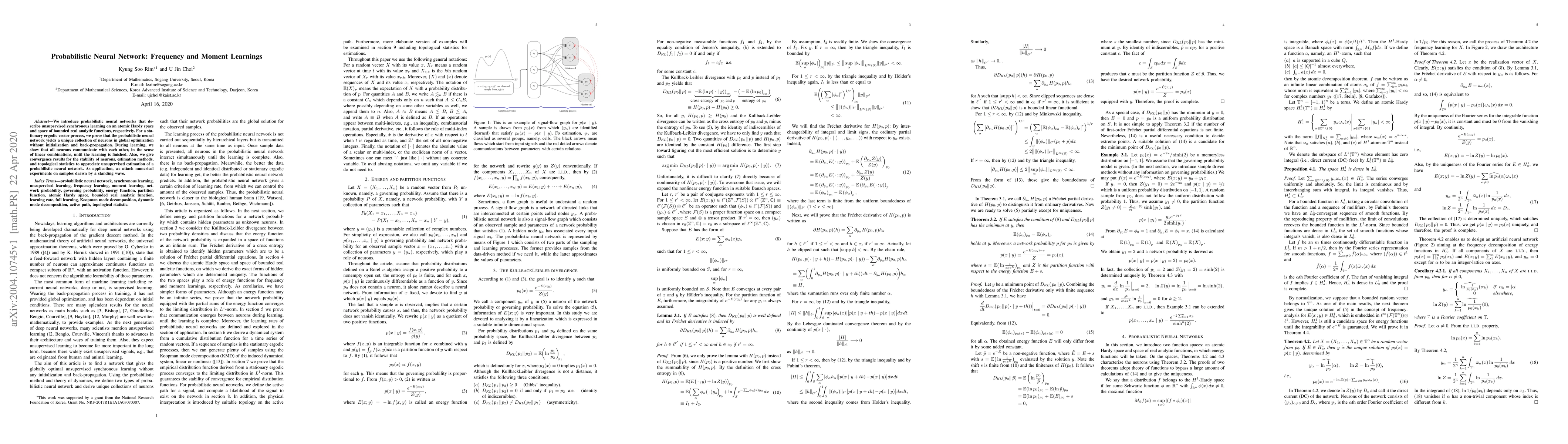We introduce probabilistic neural networks that describe unsupervised synchronous learning on an atomic Hardy space and space of bounded real analytic functions, respectively. For a stationary ergodic vector process, we prove that the probabilistic neural network yields a unique collection of neurons in global optimization without initialization and back-propagation. During learning, we show that all neurons communicate with each other, in the sense of linear combinations, until the learning is finished. Also, we give convergence results for the stability of neurons, estimation methods, and topological statistics to appreciate unsupervised estimation of a probabilistic neural network. As application, we attach numerical experiments on samples drawn by a standing wave.