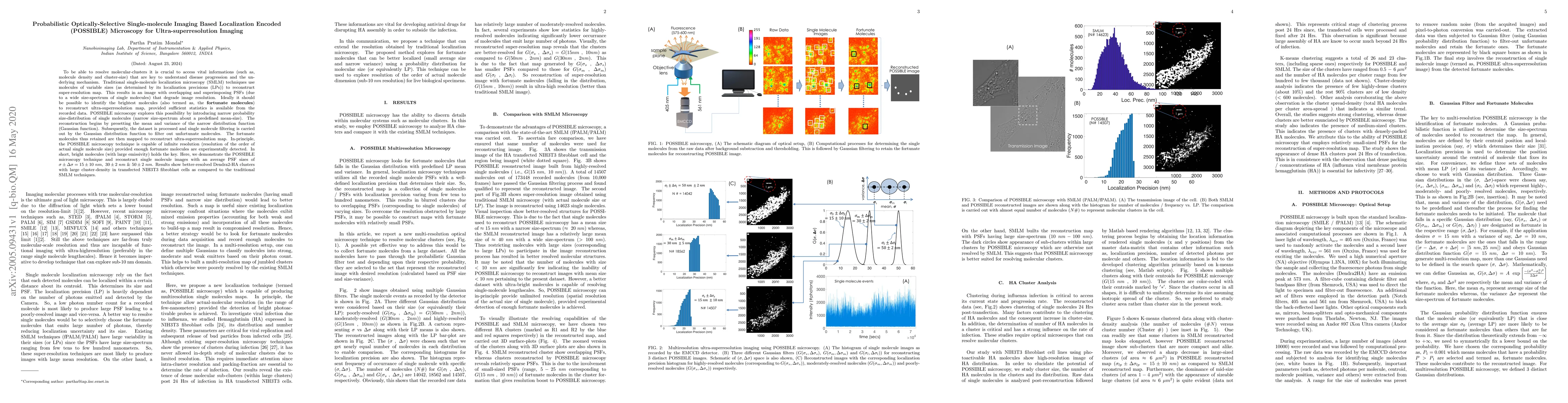 POSSIBLE microscopy introduces a method for ultra-superresolution imaging by selectively localizing the brightest molecules, thereby filtering out less precise localizations and achieving higher resolution images. This technique demonstrates improved resolution and clarity in imaging molecular clusters in NIH3T3 fibroblast cells compared to traditional SMLM methods.