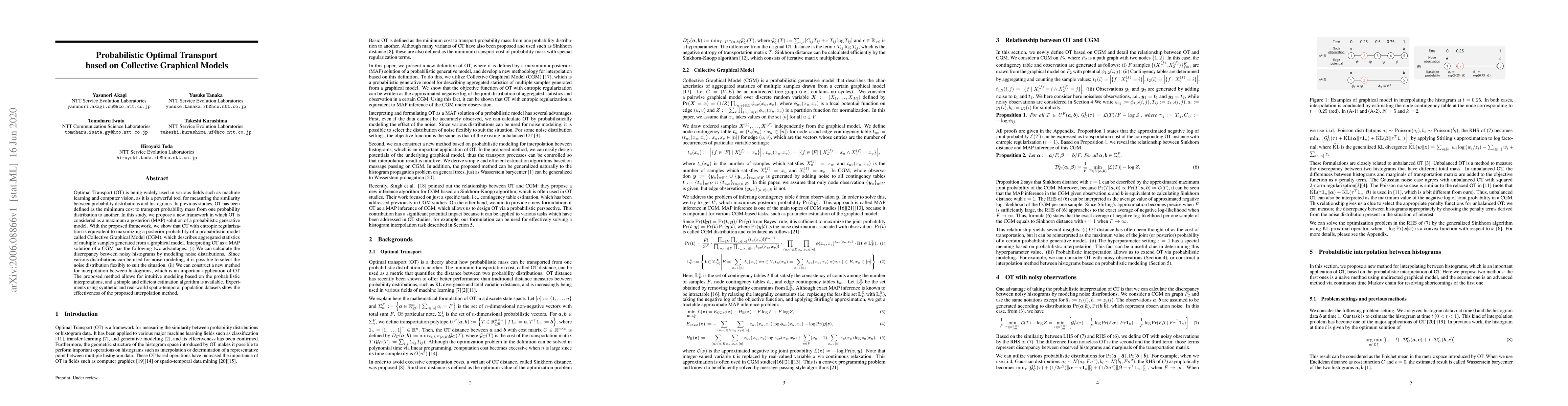 This paper proposes a probabilistic framework for Optimal Transport (OT) based on Collective Graphical Models (CGM), where OT is interpreted as a maximum a posteriori solution. The approach enables flexible noise modeling and efficient interpolation between histograms, demonstrated through experiments on spatio-temporal datasets.