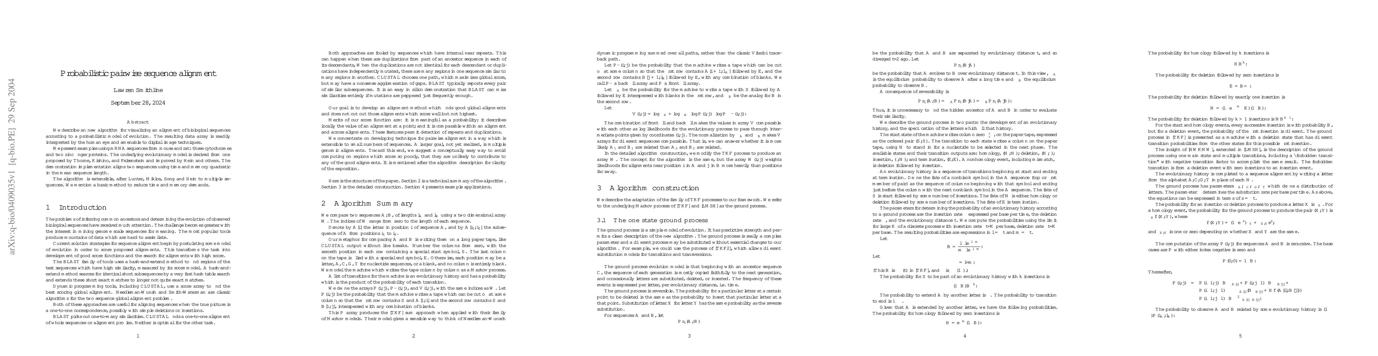 Researchers developed an algorithm for probabilistic pairwise sequence alignment, enabling visualization of biological sequences according to a model of evolution. The method is extensible and adaptable, with applications in analyzing mRNA sequences from mice and rats.