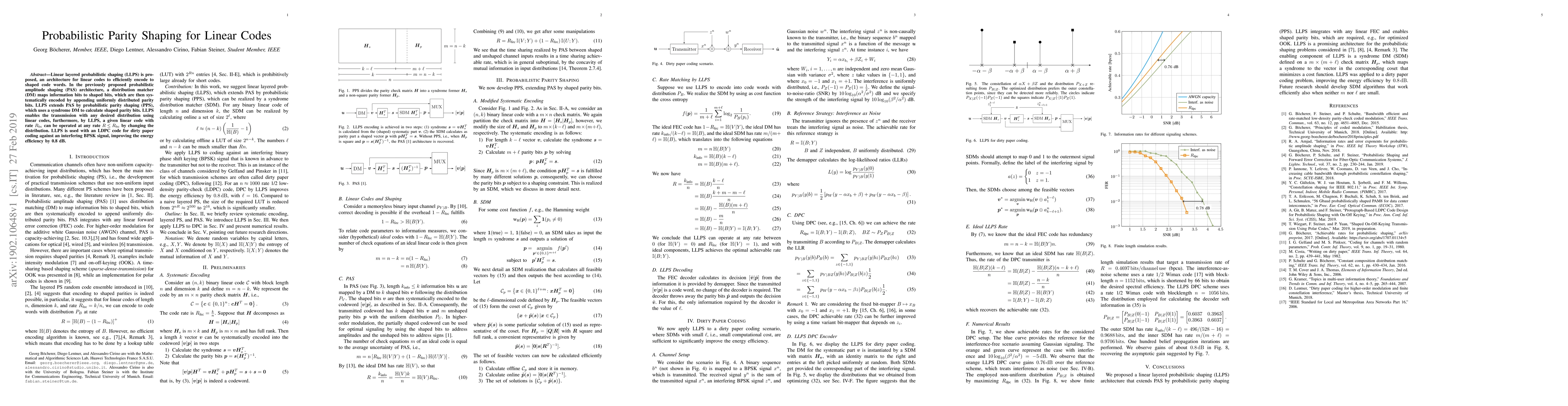 Linear layered probabilistic shaping (LLPS) is proposed, an architecture for linear codes to efficiently encode to shaped code words. In the previously proposed probabilistic amplitude shaping (PAS) architecture, a distribution matcher (DM) maps information bits to shaped bits, which are then systematically encoded by appending uniformly distributed parity bits. LLPS extends PAS by probabilistic parity shaping (PPS), which uses a syndrome DM to calculate shaped parity bits. LLPS enables the transmission with any desired distribution using linear codes, furthermore, by LLPS, a given linear code with rate $R_\text{fec}$ can be operated at any rate $R\leq R_\text{fec}$ by changing the distribution. LLPS is used with an LDPC code for dirty paper coding against an interfering BPSK signal, improving the energy efficiency by 0.8 dB.