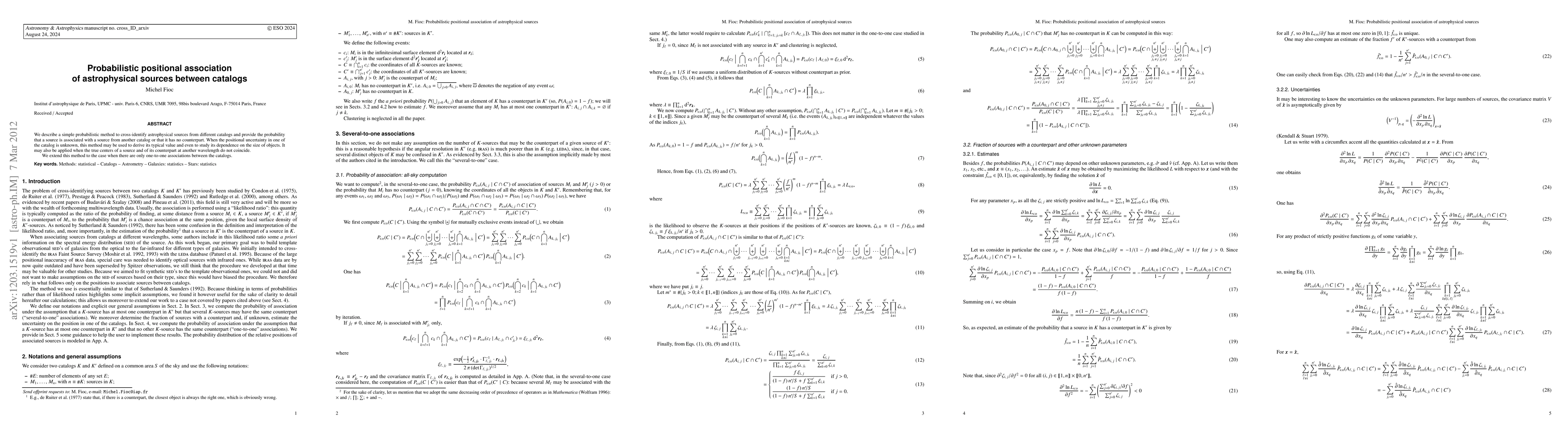This paper presents a probabilistic method to identify astrophysical sources from different catalogs with positional uncertainty, providing association probabilities and implications for one-to-one catalog associations.