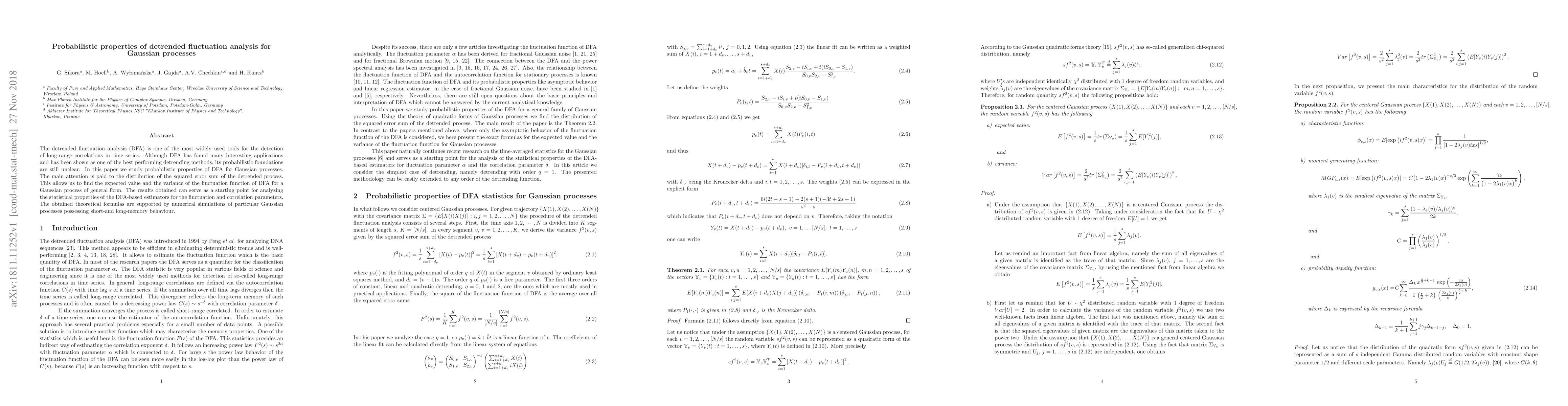 This paper investigates the probabilistic foundations of detrended fluctuation analysis (DFA) for Gaussian processes, focusing on the distribution of the squared error sum of the detrended process. It derives the expected value and variance of the fluctuation function for Gaussian processes, providing a theoretical basis for analyzing DFA-based estimators and supported by numerical simulations.