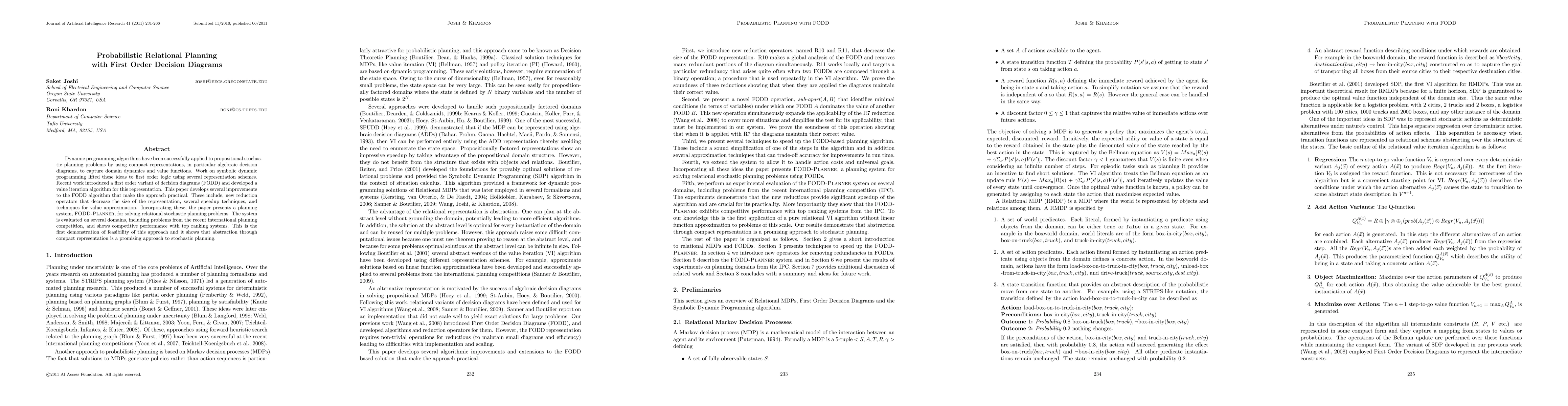This paper introduces enhancements to the first-order variant of decision diagrams (FODD) for probabilistic relational planning, including new reduction operators, speedup techniques, and value approximation methods. The FODD-Planner system, developed using these improvements, demonstrates competitive performance in solving relational stochastic planning problems, indicating the potential of compact representations in this domain.