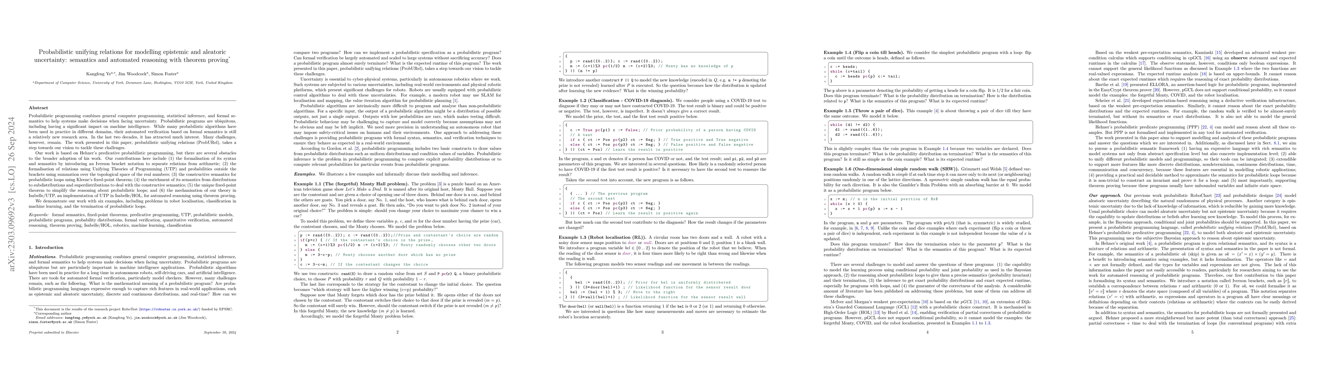 This paper introduces probabilistic relations to model epistemic and aleatoric uncertainty in probabilistic programming, formalizing syntax and semantics with Iverson bracket notation and Unifying Theories of Programming (UTP). It also presents mechanized theorem proving in Isabelle/UTP for automated reasoning and demonstrates applications in robot localization, machine learning, and probabilistic loop termination.