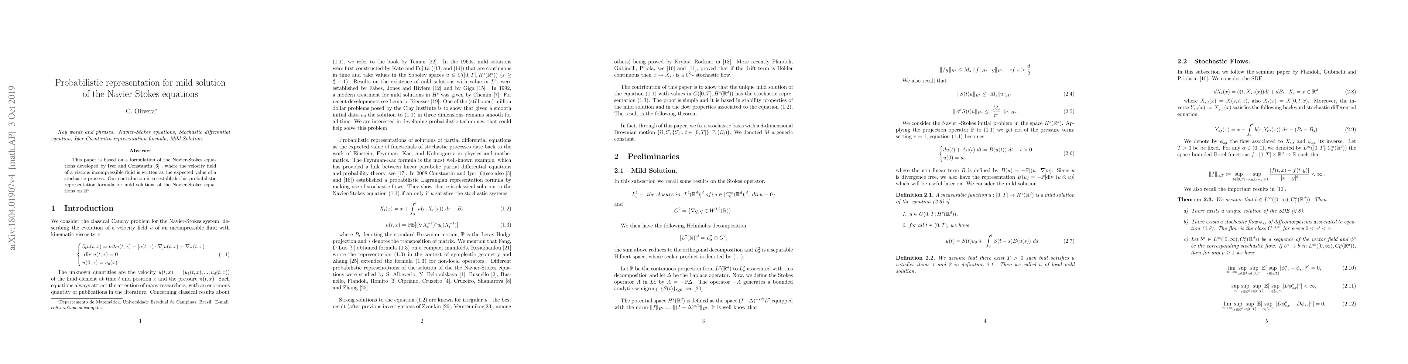 This paper develops a probabilistic representation for mild solutions of the Navier-Stokes equations, extending Iyer and Constantin's formulation by expressing the velocity field as the expected value of a stochastic process. The focus is on establishing this representation on $\mathbb{R}^{d}$.