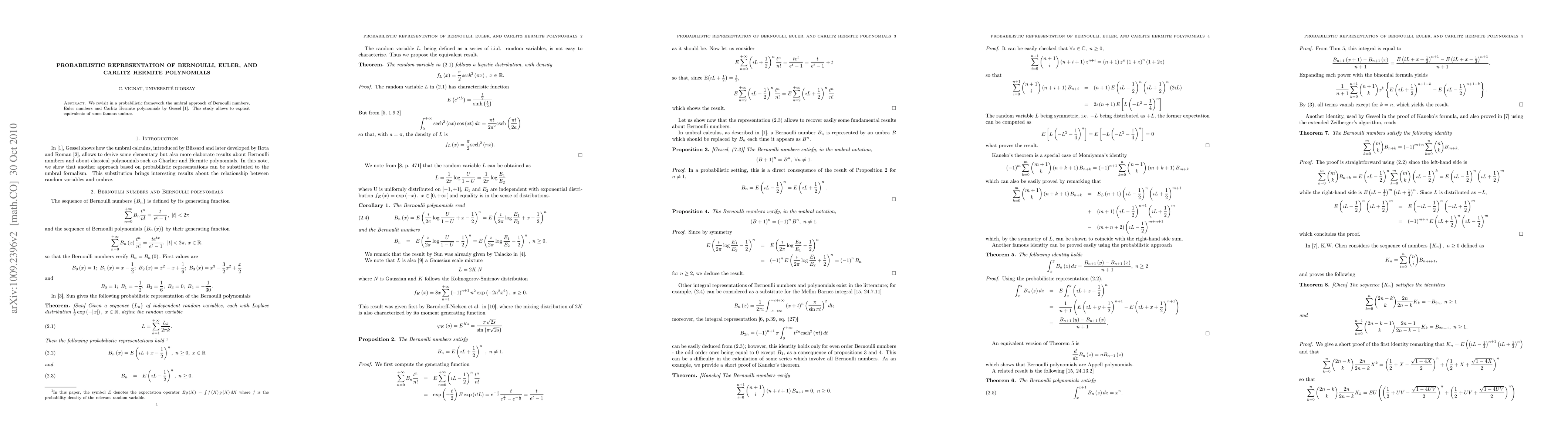 Summary: This paper explores the probabilistic representation of Bernoulli, Euler, and Carlitz Hermite polynomials using an umbral approach, building on Gessel's earlier work. The focus is on understanding these polynomials through a probabilistic lens.