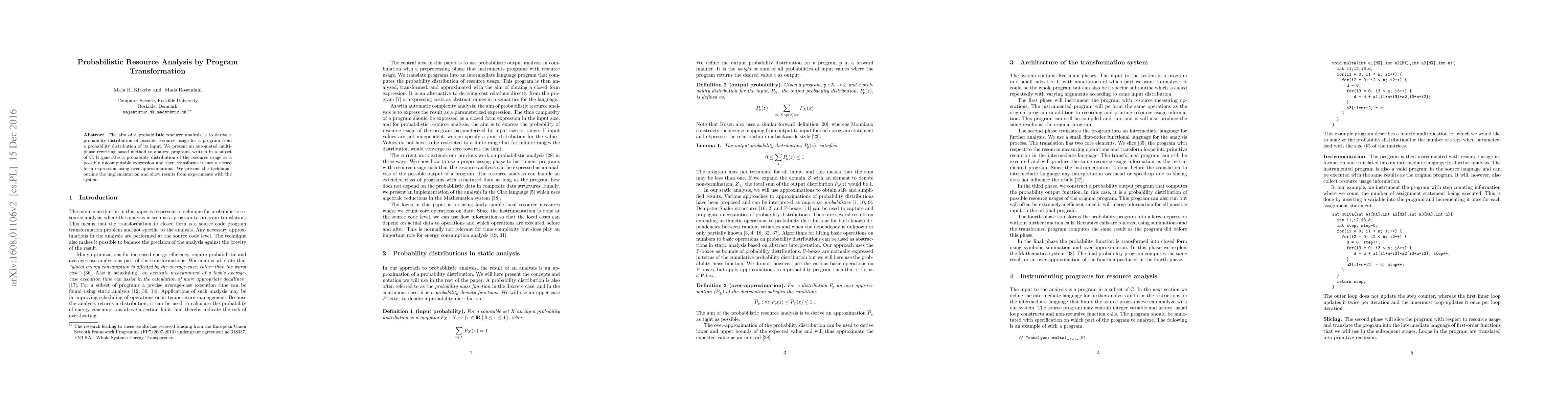 The aim of a probabilistic resource analysis is to derive a probability distribution of possible resource usage for a program from a probability distribution of its input. We present an automated multi- phase rewriting based method to analyze programs written in a subset of C. It generates a probability distribution of the resource usage as a possibly uncomputable expression and then transforms it into a closed form expression using over-approximations. We present the technique, outline the implementation and show results from experiments with the system.