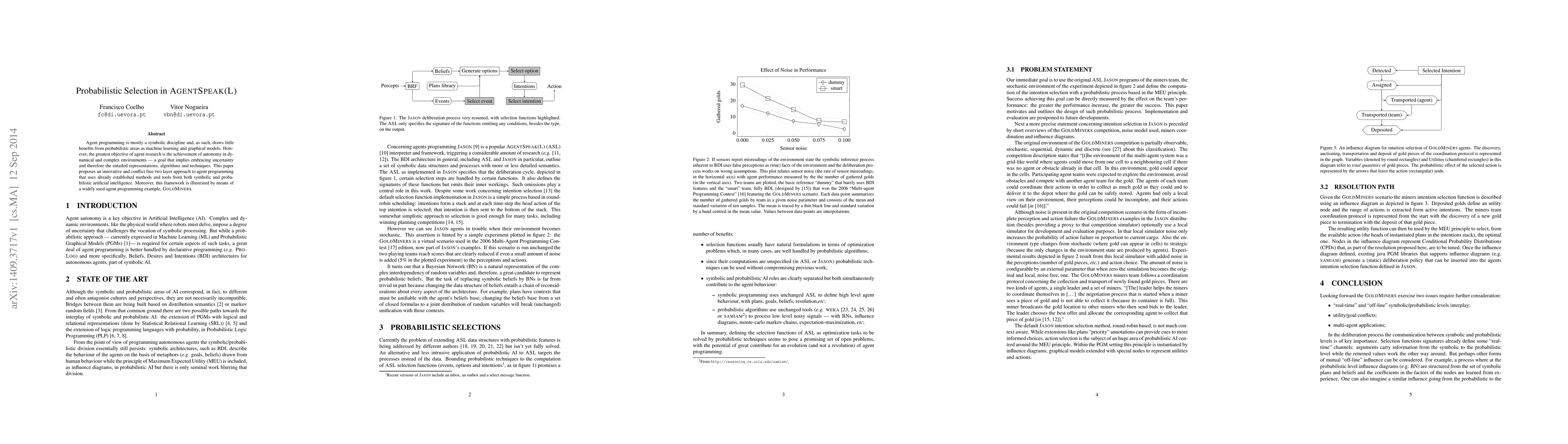 Agent programming is mostly a symbolic discipline and, as such, draws little benefits from probabilistic areas as machine learning and graphical models. However, the greatest objective of agent research is the achievement of autonomy in dynamical and complex environments --- a goal that implies embracing uncertainty and therefore the entailed representations, algorithms and techniques. This paper proposes an innovative and conflict free two layer approach to agent programming that uses already established methods and tools from both symbolic and probabilistic artificial intelligence. Moreover, this framework is illustrated by means of a widely used agent programming example, GoldMiners.